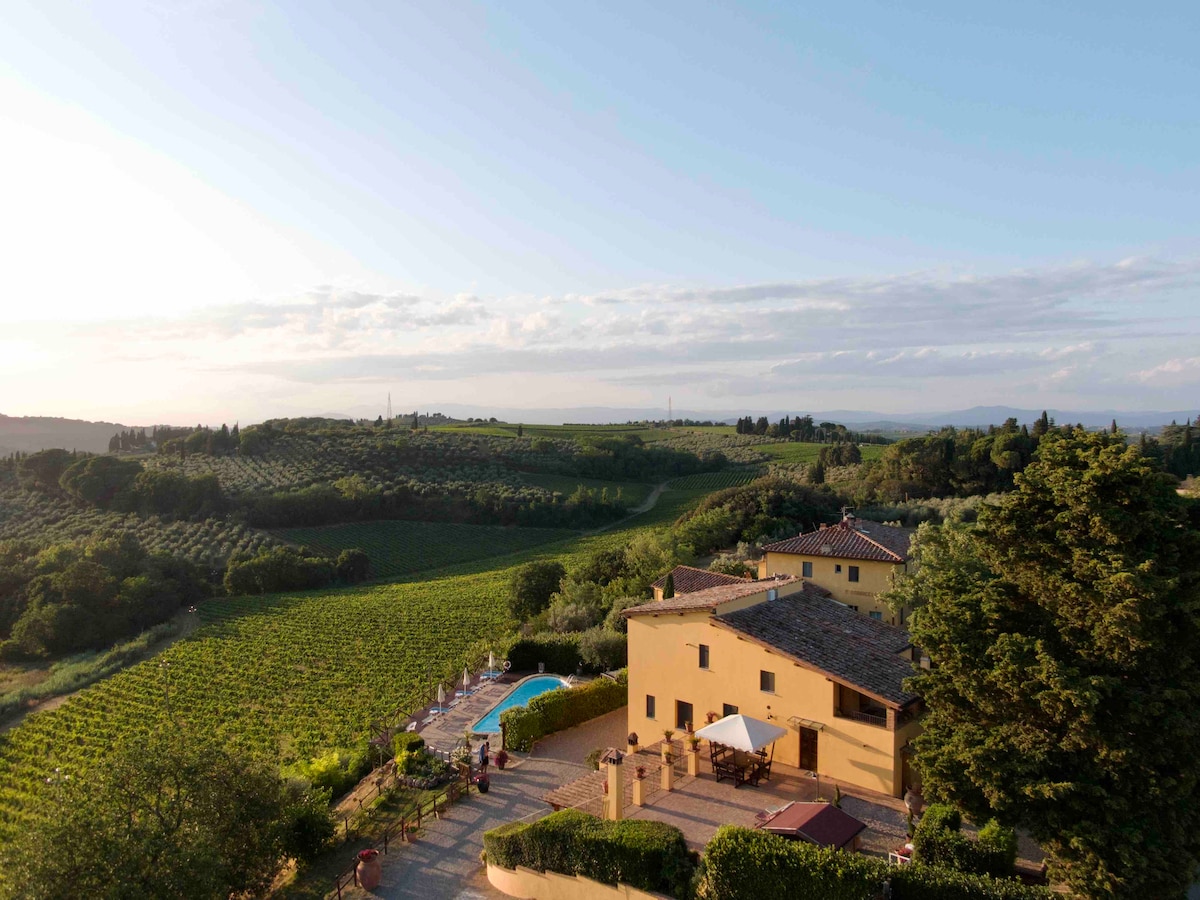 Podere Vergianoni s bazénem uprostřed Chianti