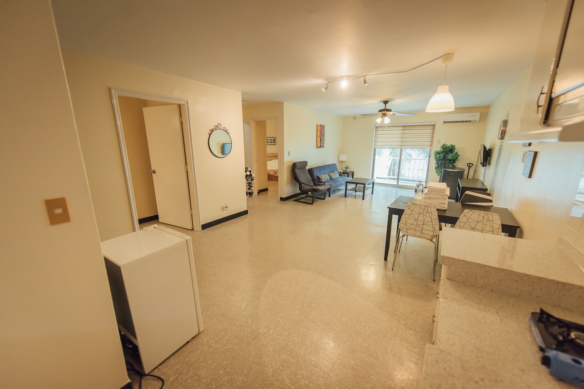 Sensi Stay se nachází v centru města Garapan na ostrově Saipan a nabízí klidné a bezpečné útočiště, které ti pomůže uvolnit se a oživit tělo, mysl i duši. S policejní stanicí hned za rohem a extra zabezpečenou bránou do tvého bytu se můžeš plně uvolnit a užít si pobyt na ostrově. • Byt ve třetím patře (pouze schody) • Uzavřený prostor s nepřetržitou kamerou • Krátká vzdálenost pěšky na pláže, bary, restaurace, pekárny, večerky, masážní salóny, American Memorial Park, Crowne atd.