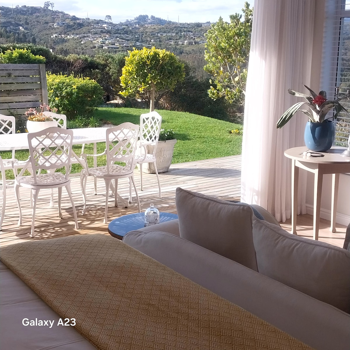 Boasting Lagoon views and beautiful fynbos in the secure Kanonkop Private Estate we have 2 self catering units. Lagoon View and Garden View. Both with a large terrace. Lagoon suite with 180 degree view of the Knysna Lagoon all the way to the Heads. Garden View bigger with garden views only. Each unit sleeps 2. 8 minutes from the famous Thesen Island Harbour Town and Knysna Waterfront. Scenic walks and bird life is abundant. Simola Golf course is 3 km and Pezula is 6km .