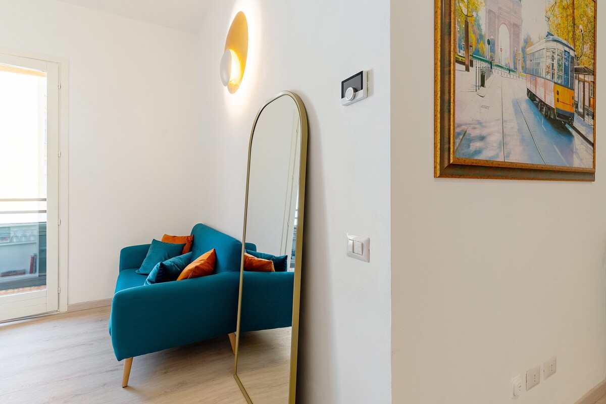 Escape to a private, sun-drenched penthouse in the heart of Milan. This unique, top-floor attic in a historic building offers a quiet retreat for two in the heart of the city. It features a fully equipped kitchen, a dedicated table/workspace, a modern home theatre system with Sonos audio, and two Daikin A/C units. Located just a 2-minute walk from Cadorna station, with the Duomo and Sforza Castle nearby. Enjoy seamless self-check-in for a perfectly independent city getaway.