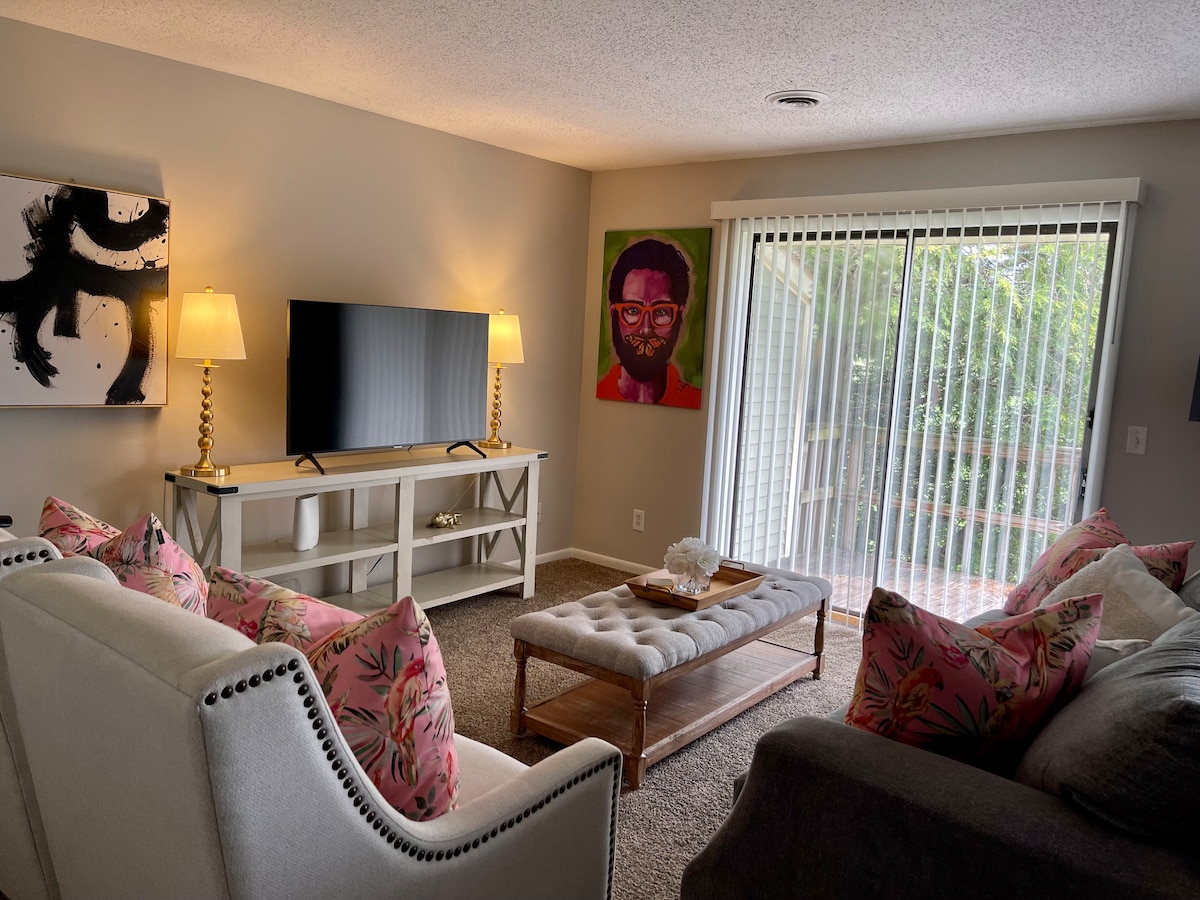 Předělaný dům se 3 ložnicemi, 2 koupelnami, centrální klimatizací a podlahovým vytápěním. Sekční pohovka s dvojitým polohováním! Pohodlné postele, 2 pokoje s manželskou postelí, 1 pokoj s 1 manželskou postelí a 1 dvojlůžkem. Kuchyně se všemi nezbytnostmi pro přípravu jídel a velký stůl. Parkování mimo ulici před domem, pár bloků od pláže, 1,5 míle od centra. Oplocený soukromý boční dvůr s plynovým grilem a novou vířivkou! Vysokorychlostní router a internet!