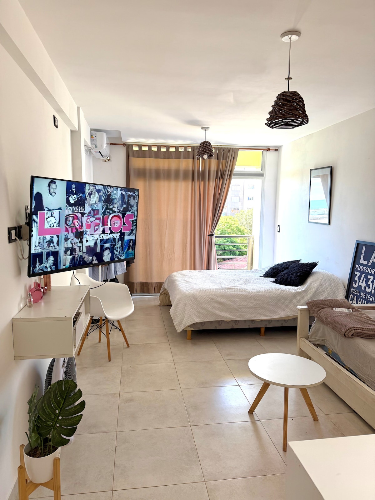 Amplio monoambiente (49m2) en edificio nuevo, con cuarto separado por una pared corrediza. Opción de dos camas individuales o colchón tamaño king. Cuenta tambien con un sofá cama. Muy iluminado con vista al mar, parrilla privada, lavarropas, cocina completa con cafetera. Incluye ropa blanca. Calefacción por losa radiante, y muy buena ventilación. Televisor Smart con cable, y WiFi 200 megas. Almacenes, verdulería y farmacia a menos de 100 metros. A tres cuadras del Pato y calle comercial Puan