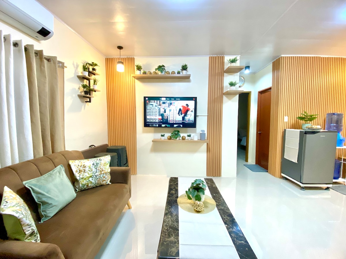 This place is homey in a gated subd., perfect for family and friends. It has an air-conditioned living room with 300mbps Wifi and Netflix, a working kitchen with refrigerator, electric stove, bread toaster, cooking & dining wares, 2 air-conditioned bedrooms with queen sized bed, an extra mattress and a cabinet, a bathroom in each floor and a parking space that can accommodate two cars. It also has a patio where you can have a coffee and good conversations