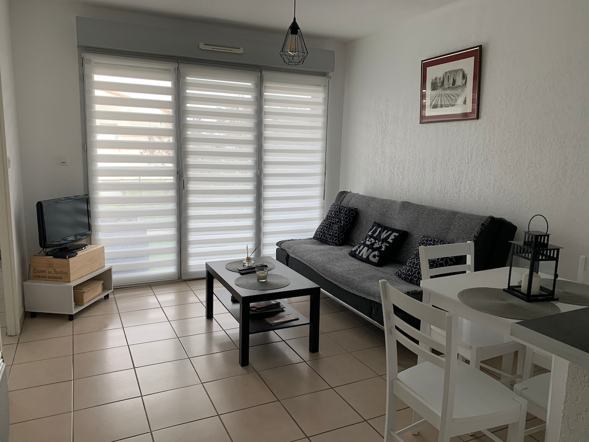 Dobrý den, Vítám vás u sebe doma, v půvabné přístavbě domu, kde si můžete užít pobyt uprostřed vinic v obci Grézillac, 15 minut od Saint Émilion. Ubytování se skládá z velké obývacího pokoje, kuchyně, ložnice s vanou a zahrady. Ideální poloha, kromě vinic můžete snadno vyrazit do Bordeaux, do oblasti Bassin d'Arcachon nebo do Dordogne. Brzy na viděnou!
