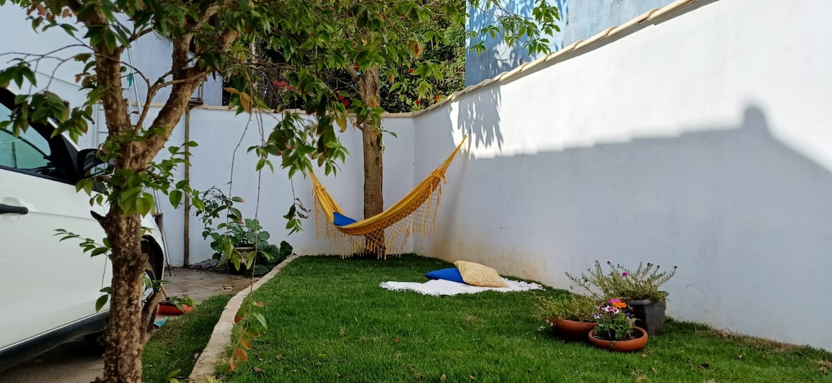 The space offered is a entire apartment (back). composed of room with bathroom (suite) and small kitchen. Přístup je přes garážovou bránu. Independent site. There is an outdoor area with a dining table and also a lawn patio (exclusive to those who rent the apartment). Moro v jiném domě před pozemkem. Garáž pro vozidlo. 600 m od pláže Manguinhos a 600 metrů od pláže Geribá. Bezpečné ubytování se spoustou pohodlí. Kontakt *21970345988*