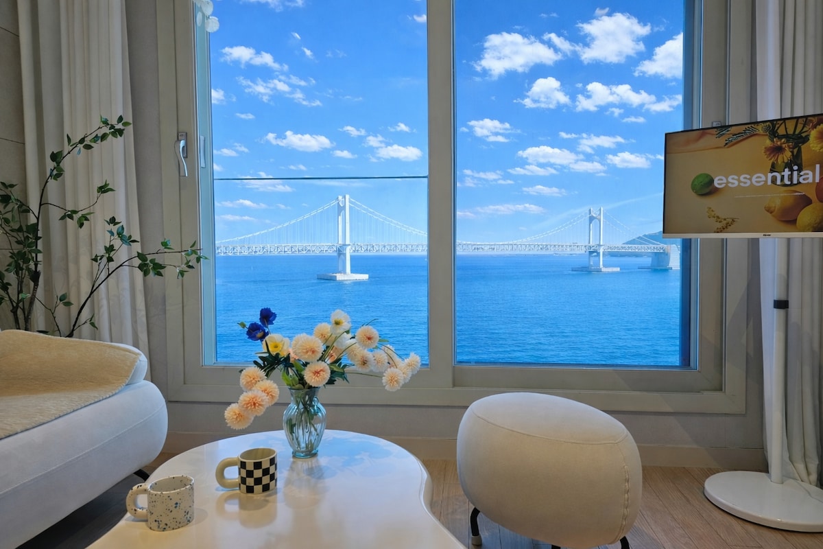 [Stayrian] Nově otevřeno O Pohled na most Gwangan O Panoramatický výhled na oceán O Vířivka s horkou vodou O 2 pokoje + 2 toalety 3 lůžka O Sesco