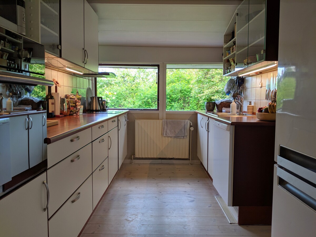 Bydlíme jen 10 minut jízdy autem od Kodaně a dvacet minut vlakem. Dům je ideální pro rodiny s dětmi, k dispozici je velká zahrada a spousta hraček, se kterými si mohou hrát i vaše děti. Je to jen 1 km od jezera Bagsværd, kde si můžete pronajmout lodě, kánoe a kajaky. Toto je náš domov, takže kuchyně je plně vybavena hrnci, pánvemi a podobně.