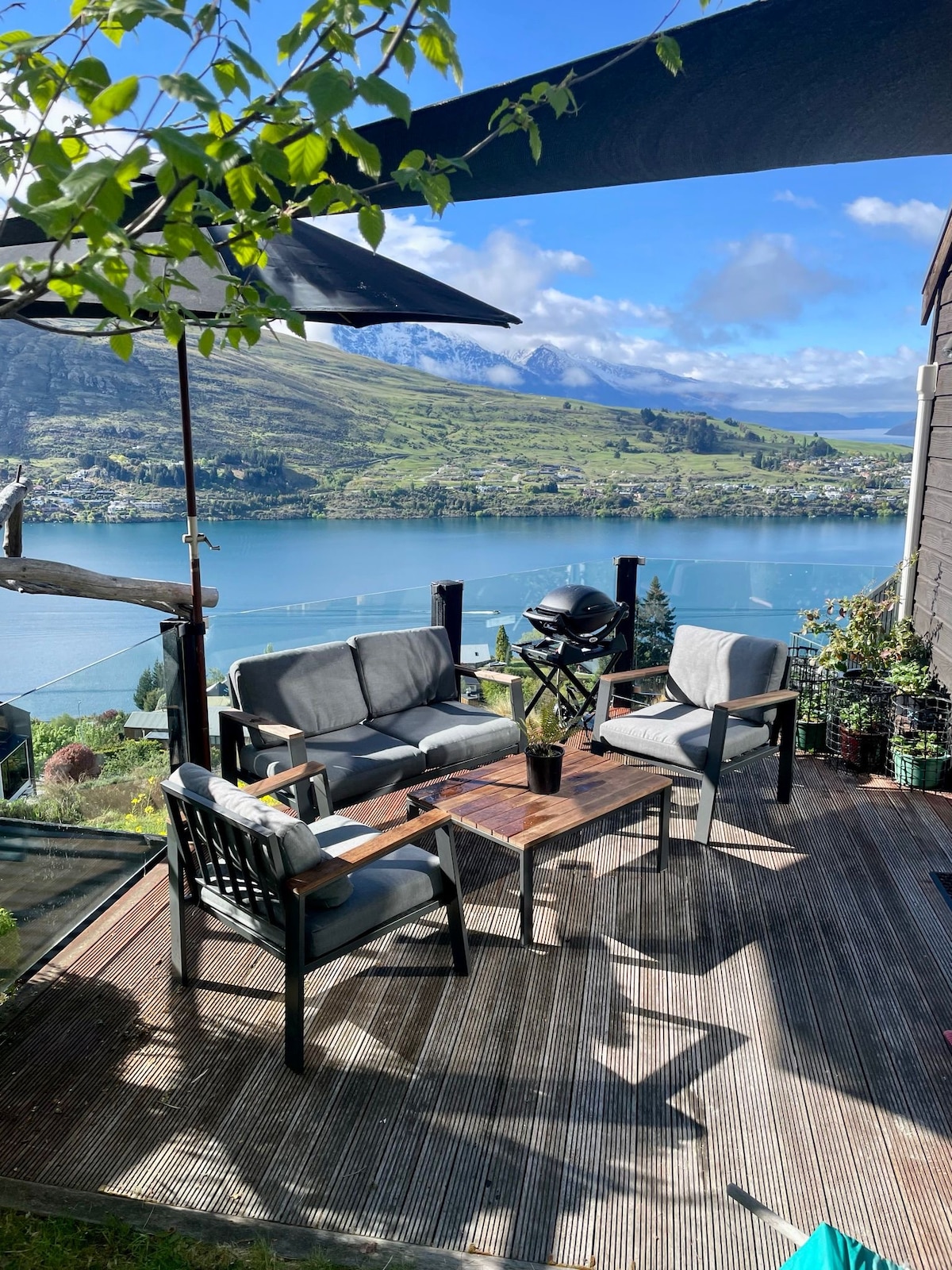 Vychutnejte si nádherný výhled na hory a jezera a ohromující scenérii Queenstownu z našeho architektonicky navrženého domu. Náš dům se nachází v Aspen Grove (5 minut jízdy od města) a má 3 dvoulůžkové ložnice a 2 koupelny. Hlavní ložnice a koupelna v patře zabírají soukromý prostor s úchvatným výhledem. Dole jsou 2 ložnice, koupelna se sprchou a vanou. Kuchyně, jídelna a obývací pokoj jsou navrženy tak, aby maximalizovaly výhled s francouzskými dveřmi, které se otevírají do soukromého dvora.