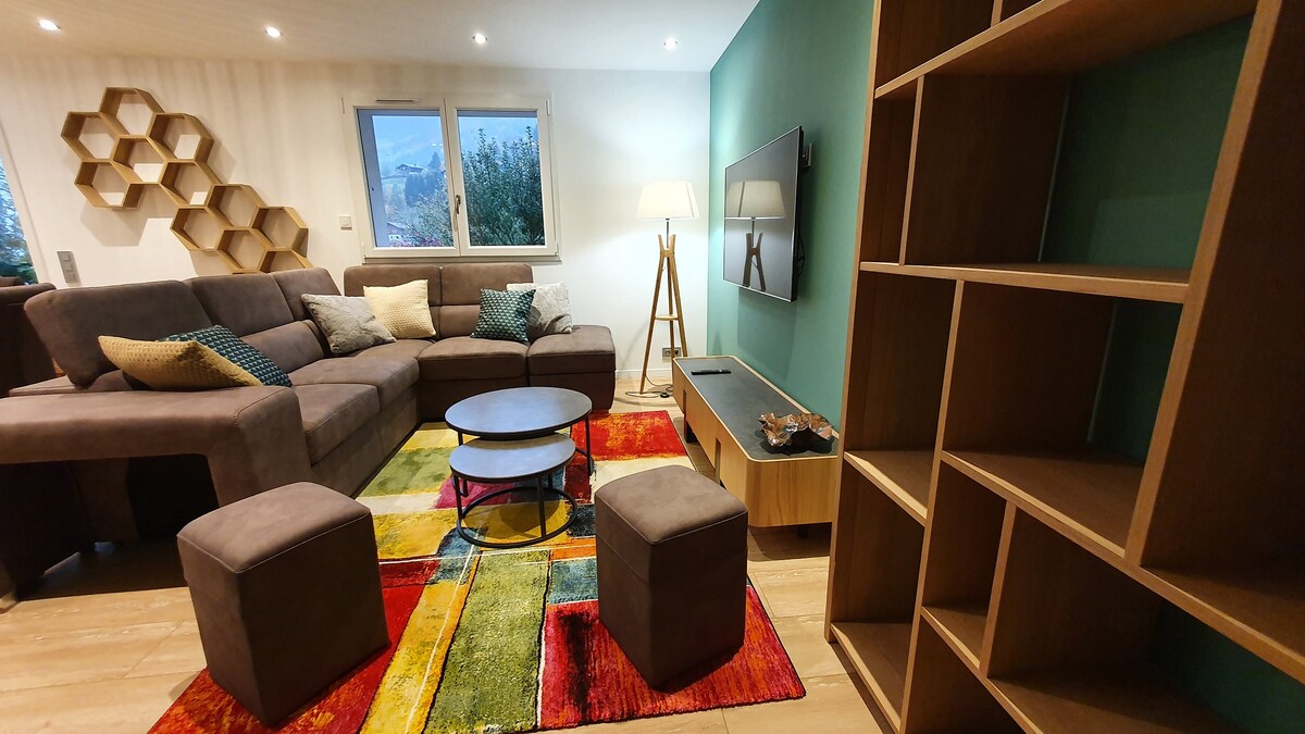 Byt o rozloze více než 70 m2, zrekonstruovaný, v přízemí. Západní orientace s výhledem na hory. Nachází se v srdci údolí (7 km od Thônes, Grand-Bornand a La Clusaz, 25 km od Annecy). Soukromý přístup k bydlení, parkování zdarma před bytem. Klidné a odpočinkové místo. Plně vybavený apartmán, ložní prádlo, dětská postýlka, dětská židlička. Zařízení na fondue a raclette Kapacita 4 osoby (max. 6: rozkládací pohovka). Místnost pro kola a lyže. Snídaně (čaj, káva, džem)