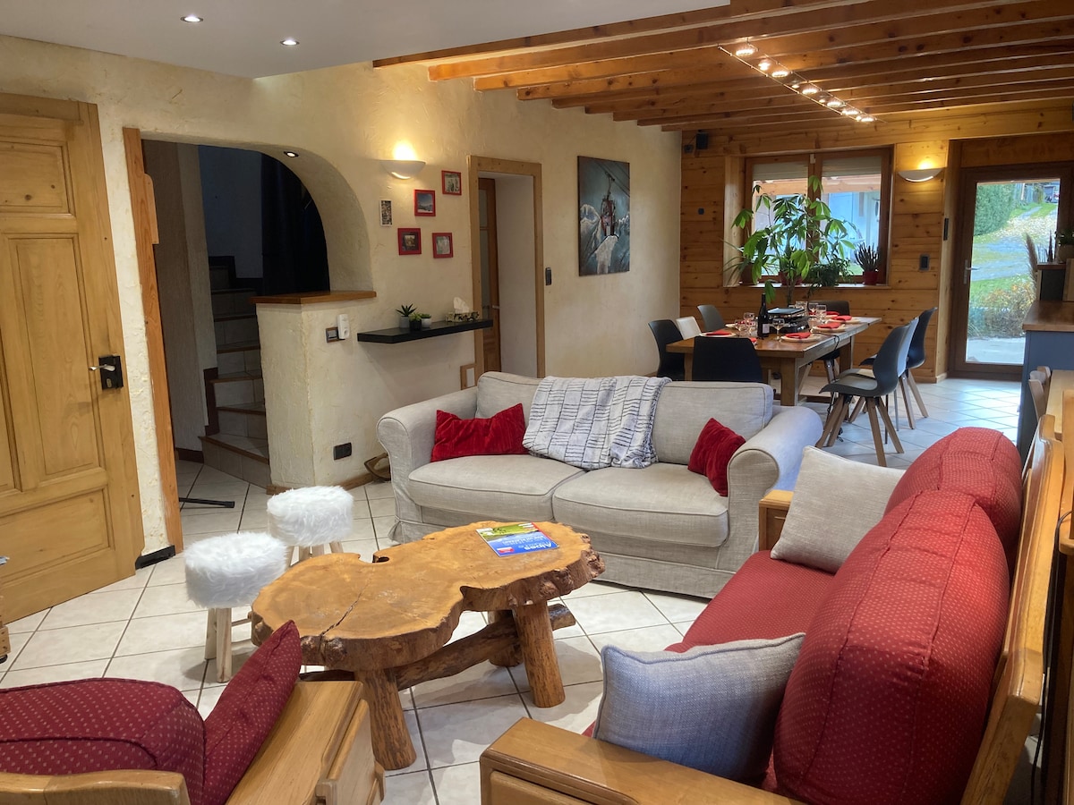 Jedná se o velmi vzácný nález: krásnou chatu s vlastní saunou a zahradou. ★Hosté si vždy pochvalují saunu, klidné prostředí a kvalitu chaty – je to opravdu výjimečné ubytování.★ 100 m² chata pouhých 5 minut od Les Houches a údolí Chamonix. ✅ Soukromá sudová sauna ✅ Plně vybavená kuchyň ✅ Zahrada s terasou a grilem ✅ Samoobslužný proces ubytování ✅ Parkování až pro 3 auta ✅ Velmi rychlý internet (660 Mb/s) ✅ Netflix a Amazon Prime ✅ Klidná, venkovská oblast