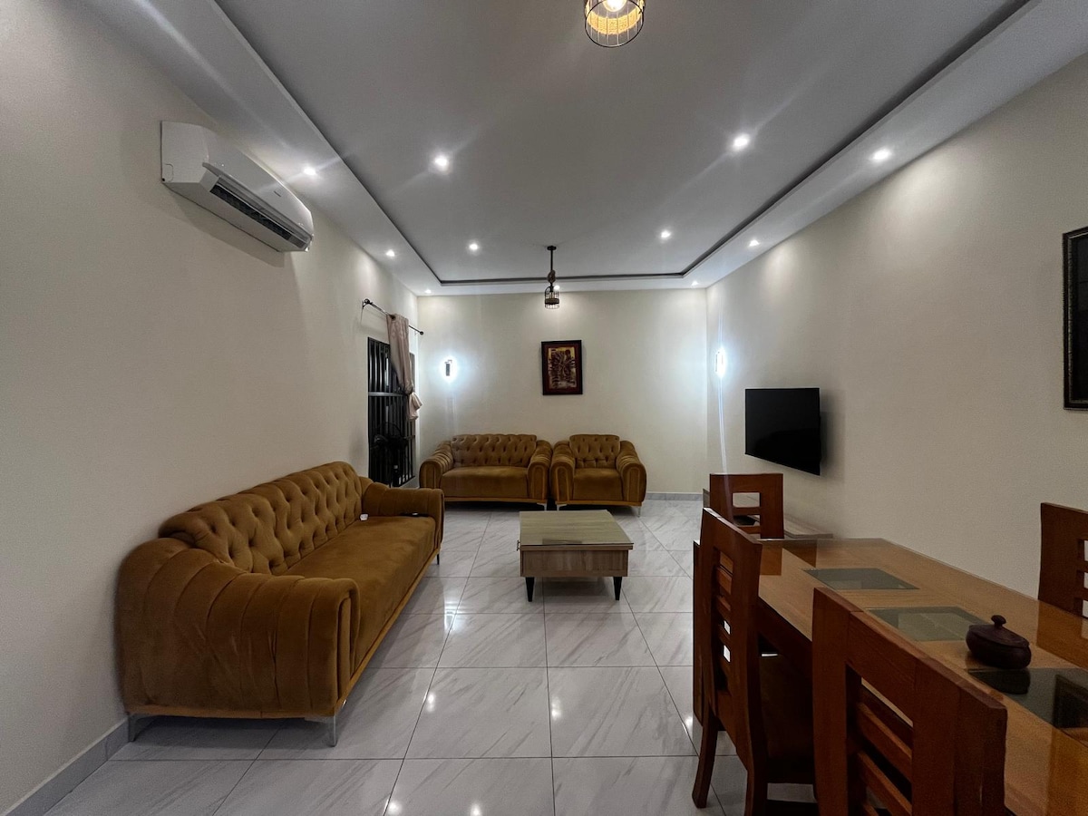 Vítejte v tomto moderním a prostorném garsoně v Cotonou – vašem dokonalém domově daleko od domova v klidné a bezpečné čtvrti. Užij si plně vybavenou kuchyni, útulný obývací pokoj s pohodlnými pohovkami a chytrým televizorem, jídelní stůl a soukromou ložnici s koupelnou. Prostor je světlý, čistý a promyšleně navržený pro relaxaci nebo práci. Tento krásný byt je jen kousek jízdy od letiště, je blízko luxusních restaurací v Haie vive a také v blízkosti supermarketů a obchodů