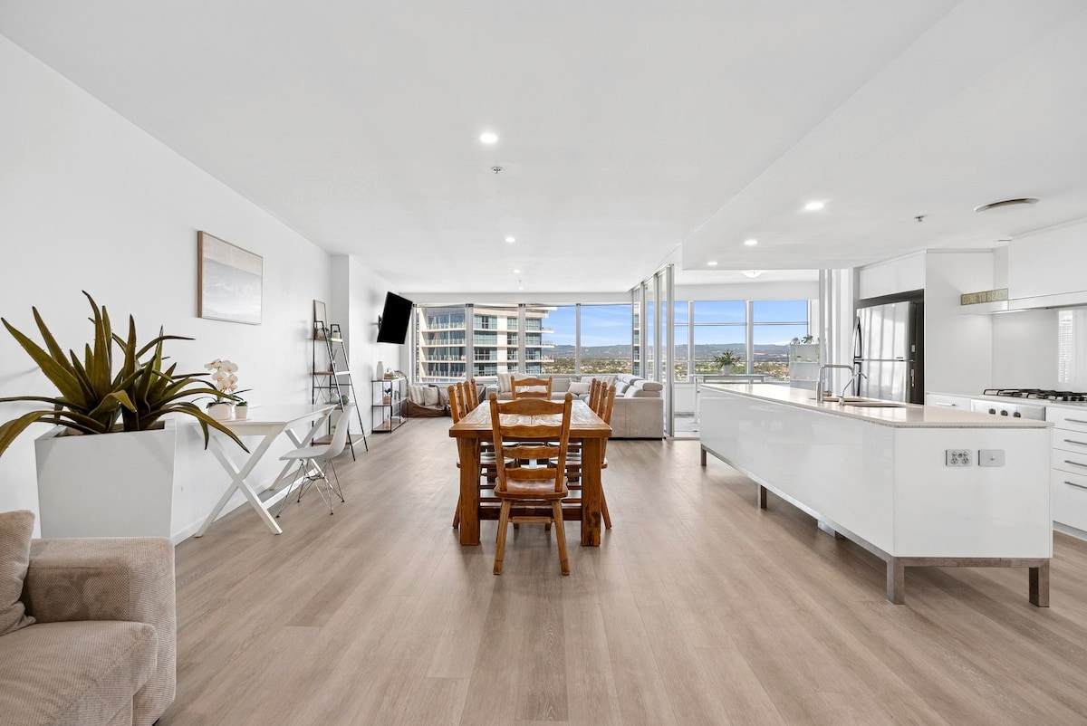 Přímý výhled na oceán a město z tohoto zbrusu nového luxusního rohového bytu se 2 ložnicemi a 2 koupelnami. V 55. patře budeš mít pocit, že se dotýkáš oblak. Jednotka je vybavena BEZPLATNÝM PARKOVÁNÍM v budovách uzavřeného podzemního parkoviště. Absolutní poloha na pláži v nejnovější budově v centru Surfers Paradise. Jednotka je vybavena vším, co budete potřebovat pro svůj pobyt, včetně rychlého 5G WiFi a dalších! Užij si vyhřívaný venkovní bazén, lázně, travnaté plochy/piknikové prostory, posilovnu, kavárnu a restaurace.