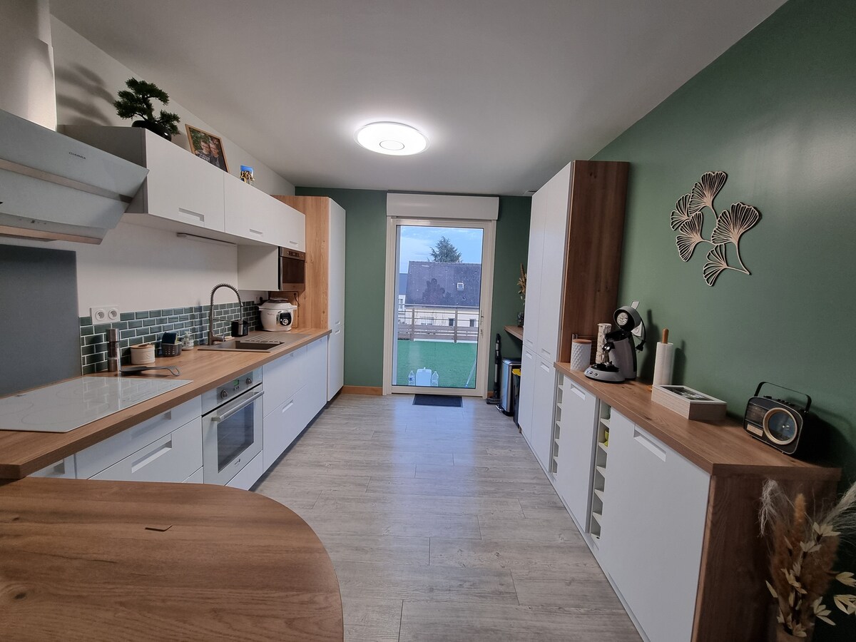 Na půli cesty mezi Mont St Michel a zámky v údolí řeky Loire! Na turistické stezce budete pohodlně ubytováni v klidu venkova a zcela nezávisle. Budete mít k dispozici pěkný obývací pokoj s 1 pohovkou a 1 stolem, 2 ložnice a koupelnu. Budete mít k dispozici soukromou terasu s výhledem na pastviny. Ať už jste sami, jako pár, se svými dětmi nebo s přáteli, rádi vás přivítáme a nabídneme vám snídani s našimi domácími produkty.