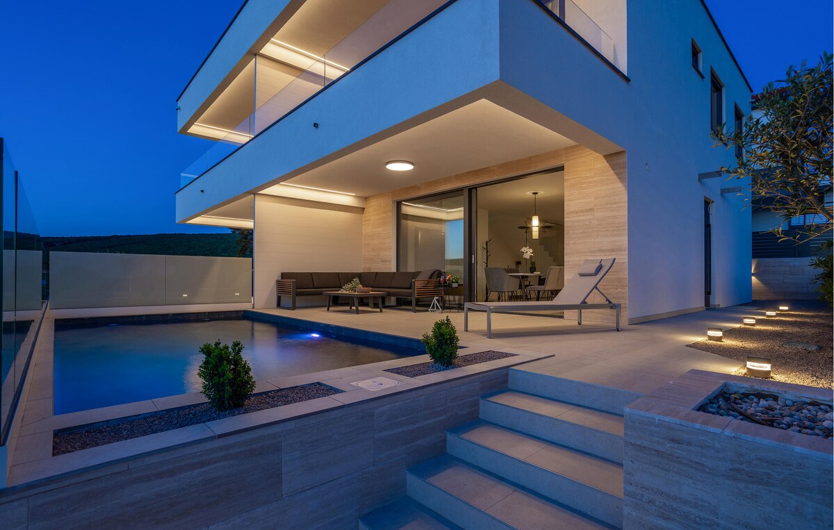 Toto jedinečné nově postavené ubytování se nachází ve vesnici Vrh na ostrově Krk, 5 km od starého města a veškerého nezbytného vybavení. Nabízí perfektní oázu pro odpočinek a relaxaci v prostorné vile vybavené veškerým vybavením potřebným pro nezapomenutelnou dovolenou. Vila má 6 moderně zařízených pokojů a ubytuje 12 osob. Vila s výhledem na Velebit, zeleň lesa a moře je vidět ze dvou pokojů. Je vhodný pro celoroční pobyt, protože má krytý bazén, saunu a vířivku.