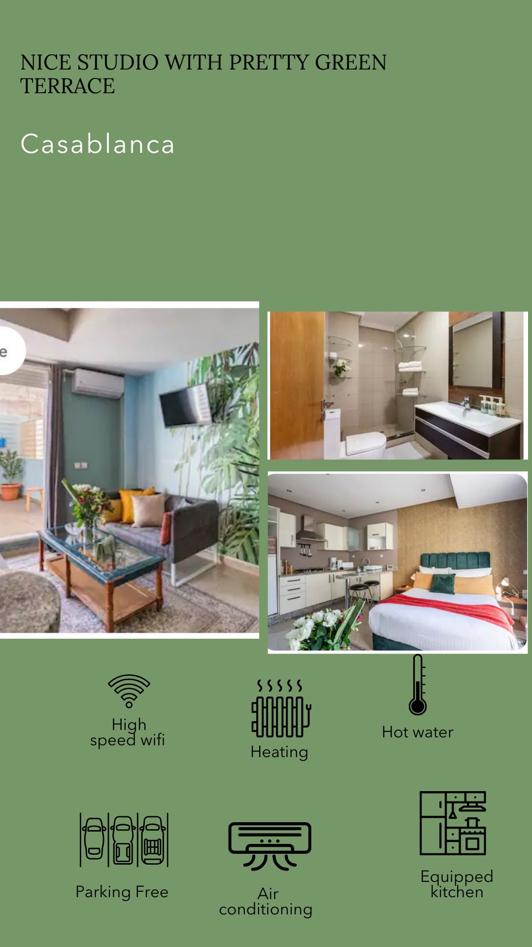 itlys de oasis má jednoznačně jedinečný styl. Kamenný přehoz od vlakového nádraží oázy, dokonale vybavený klidný apartmán pro náročné, krásná terasa se soukromou studenou nebo horkou vířivkou, bazén s bezplatným přístupem do čtvrtého patra rezidence s panoramatickým výhledem , ideální místo k pobytu a návštěvě Casablanca. všechno bylo uděláno pro vysněný pobyt.