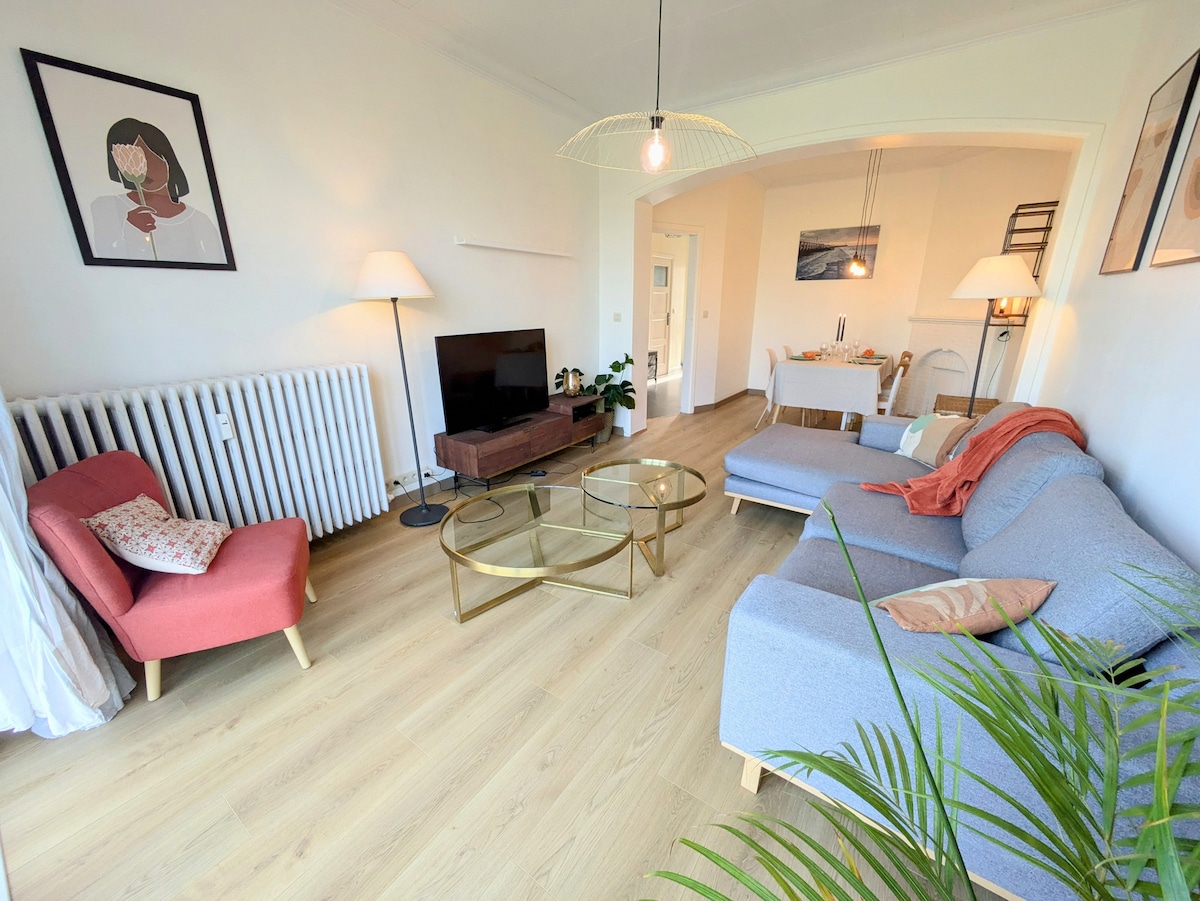 Discover this stylishly renovated 60 sqm apartment, just 3 minutes from Place Flagey’s vibrant cafes, theaters, and nightlife. The European Institutions are 10 minutes away, and the Royal Palace is a 15-minute walk. Relax in the chic living spaces or enjoy your private 10 sqm terrace. With a comfy bedroom, fully equipped kitchen, and high-speed Wi-Fi, it’s perfect for business or leisure. Book your stay and explore the best of Brussels!