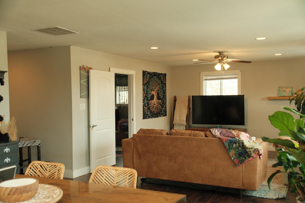**Aktualizované úklidové postupy, které splňují/překračují doporučení CDC** Usaď se na pobyt v našem úkrytu. Tento soukromý penzion je zasazen do háje starých dubů a nachází se nad naší samostatnou garáží. Zrekonstruovali jsme ho odshora dolů a relaxujeme v našem velkém venkovním prostoru. Tento klidný penzion může ubytovat až 6 osob. A co je na tom nejlepší? Jsme 5 minut od centra FtW a centrálně se nacházíme v okrese Tarrant. 20 minut, abyste se dostali kamkoliv, včetně letiště DFW, stadionu AT&T a TX Rangers