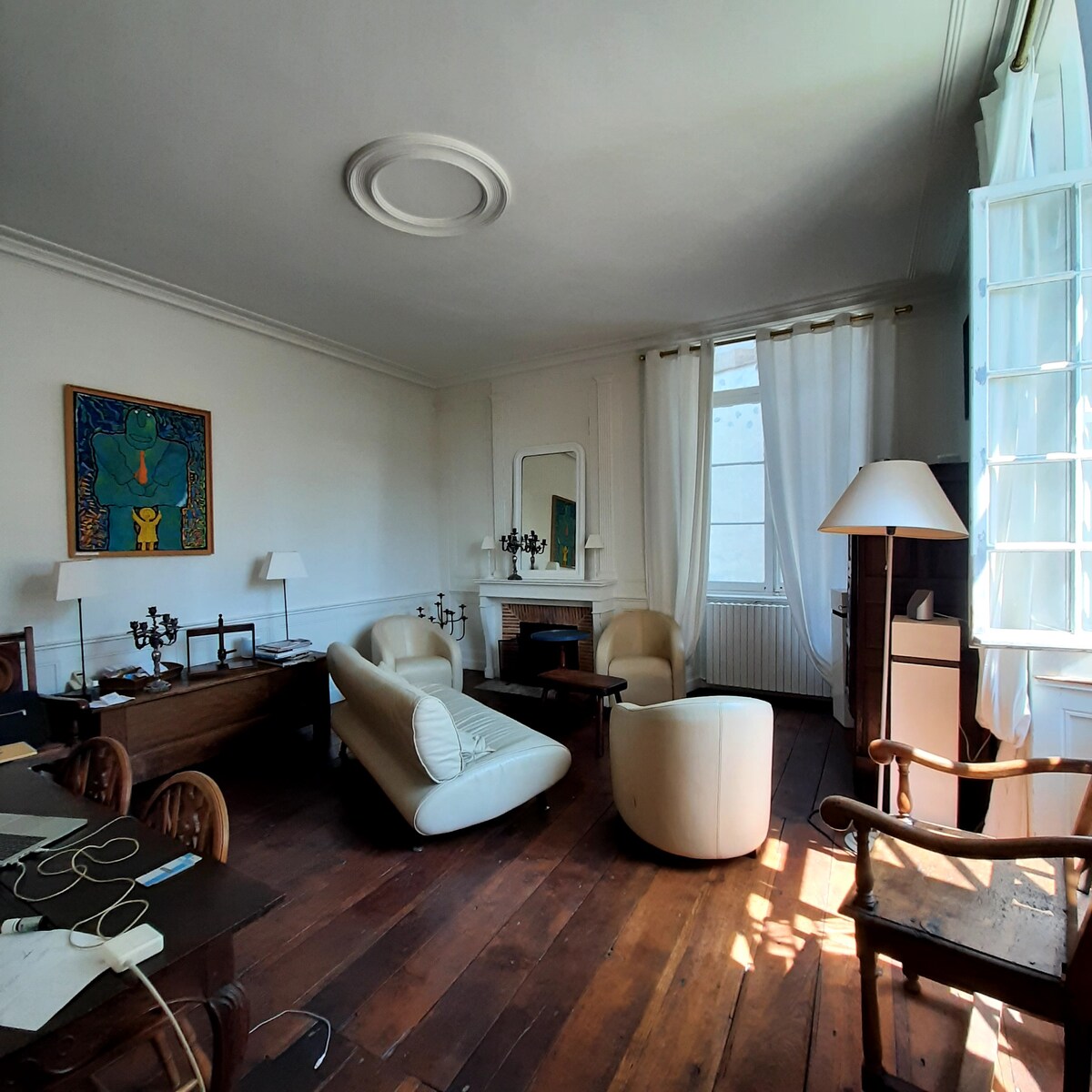 V zeleném a klidném prostředí nádherného zámku z 15. století, který se nachází u vjezdu do našeho krásného středověkého města Dinan, se budete ubytovat v podkrovním apartmánu o rozloze 54 m2 v přízemí hlavní budovy. Objevíte jeho nádherný monumentální krb a zamilujete se do tohoto autentického objektu, který je plný historie a zároveň nabízí veškeré moderní pohodlí. Nachází se v srdci krásného 3hektarového parku s rybníkem, jen 15 minut pěšky od historického centra nebo 3 minuty autobusem zdarma.
