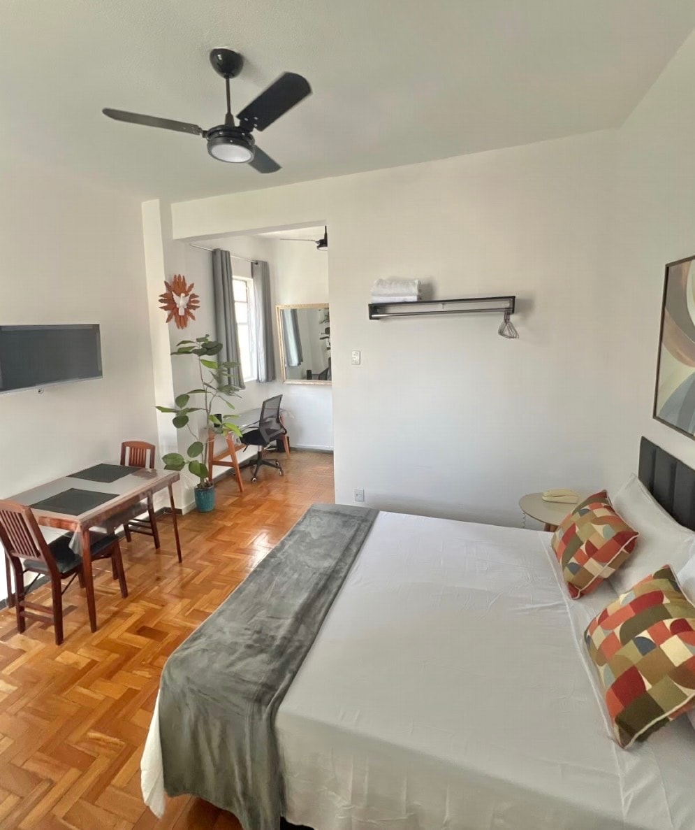 Apartment located in the center of Belo Horizonte, in front of the street square, 19th floor, definitive view, 24-hodinová recepce. NENÍ ZDE ŽÁDNÉ PARKOVÁNÍ Byt s klimatizací, stropními ventilátory, 43palcovou Smart TV, v blízkosti turistických atrakcí, supermarketu, lékáren, Central Market, Municipal Park, Hippie Fair. Ideální pro páry, jednotlivce a služebně cestující v hlavním městě Minas Gerais. It has a mini market in the superstore of the building and gym 16 floor.