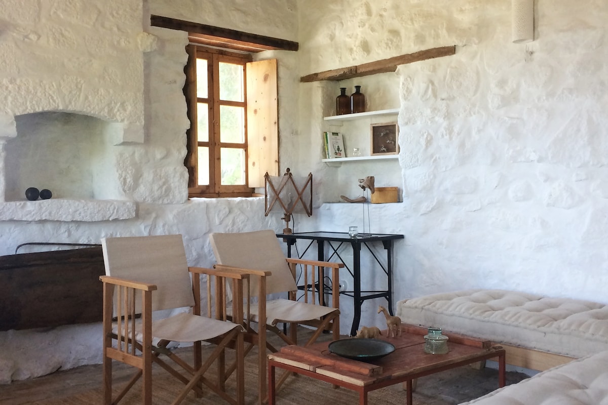 Vila „Sofas“ je dokonalým romantickým prázdninovým útočištěm. Otevři dřevěnou branku a vstup na nádherný kamenný dlážděný dvůr, který se nachází za kamennou zdí. Vila je postavena z teplého medového vápence a staré dřevěné okenice a břečťan vytvářejí nádhernou budovu plnou charakteru. Obklopená zralými keři, bujným listím a kamennými terasami, je snadné si představit, že jste se vrátili v čase.