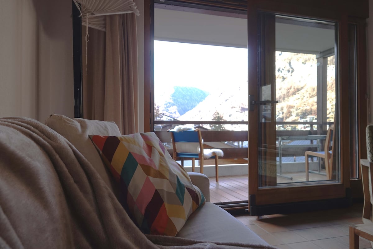 Teplý, pohodlný apartmán v blízkosti centra/nádraží/lyží, velmi světlý, s nádherným výhledem na Matterhorn. Úplný výhled z ložnice, obývacího pokoje a samozřejmě z velkého balkonu. Moderní vybavení: zabezpečená wifi, 2 velké televizory s plochou obrazovkou, dokovací stanice Bose atd.