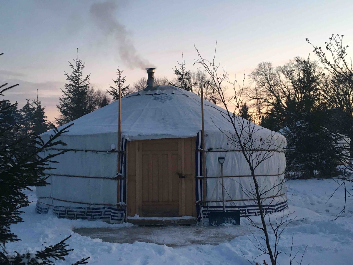 The yurt is located on our 200 acre biodynamic farm in beautiful West Grey. Guest are welcome to walk around the property and enjoy being in nature. A cozy insulated space available all year round. This accommodation is rustic with newly constructed washroom facilities near by. A Farm experience is also available. Snowshoeing or skiing trails are nearby or on the farm. Spa (hot tub and sauna) is available for private booking for 2 people for a $125 extra fee