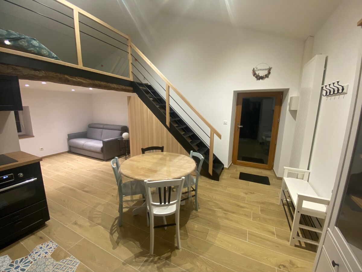 Dvoupodlažní byt o rozloze 30 m2, sousedící s rekonstruovanou statkem. V klidné oblasti v Monts du Lyonnais, 45 km od Lyonu, 35 km od St Etienne. Soukromá venkovní terasa na společném dvoře, zařízená kuchyně, koupelna, v patře 1 uzavřená ložnice, mezipatro s 1 lůžkem, parkoviště. V blízkosti bazén, kino, muzeum klobouků, muzeum řemesel, vesnice zařazené mezi nejkrásnější francouzské detours (2 km), značené turistické stezky, GR, rodinné procházky po zelené krajině.