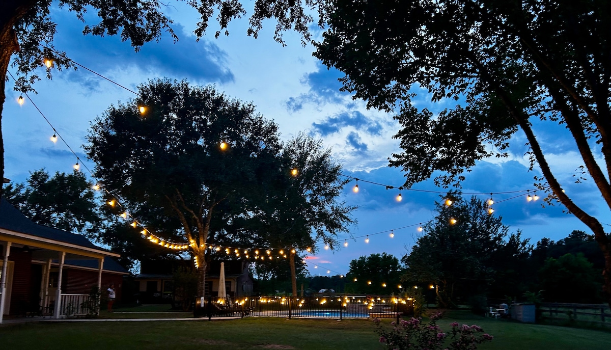 Odpočiň si v této klidné a jedinečné útulné venkovské chatě nedaleko College Station. Dvacet minut do kampusu Texas A&M/Kyle Field a deset minut do Santa's Wonderland. Užijte si plně vybavenou kuchyň, prostornou sprchu, velké verandy a plynový gril. Odpočiňte si v klidné atmosféře, kde si hrají jeleni, mývalové a pásovci. Odpočiňte si na verandě, na mole nad rybníkem, kolem ohniště nebo na terase pod hvězdami. V blízkosti mnoha atrakcí.