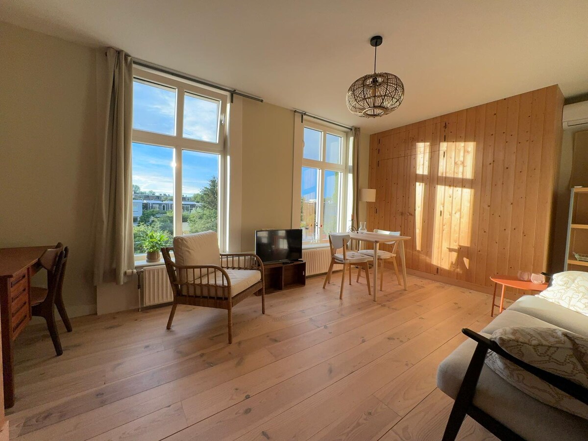 Světlý a útulný byt v centru města vedle slavného parku Noorderplantsoen. Ideální, pokud chceš objevit Groningen pěšky. Tento umělecký mini-penthouse je pohodlný s podlahovým vytápěním v koupelně, plně vybavenou kuchyní (s kávovarem, Quookerem a myčkou), střešní terasou se sluncem po celý den. Pro hudební nadšence jsou k dispozici reproduktory Sonos a 2 kytary, pokud se chceš stát rockovou hvězdou. Vlakové nádraží je vzdáleno 20 minut chůze. Budeš se cítit jako doma.