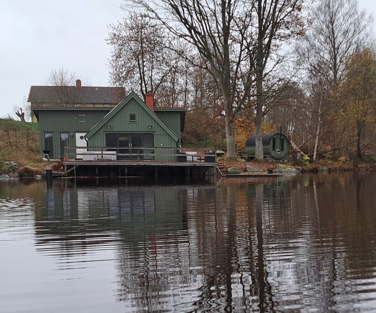 Sjöstugan – naše perla přímo u jezera! Soukromý dům s podkrovím, kuchyní, krásným velkým pokojem s krbem a výhledem na jezero. Sauna na dřevo s možností koupání v jezeře hned vedle. Vířivka na molu – vždy teplá. Koupací molo 5 metrů od dveří. Přístup k lodi. Pokud si chcete koupit rybářský lístek, kontaktujte hostitele. Dřevo do krbu a sauny je v ceně. Farma je oplocena až k jezeru a náš pes bígl Vide je často venku volný. Je hodný. V ceně jsou povlečení, ručníky a úklid.