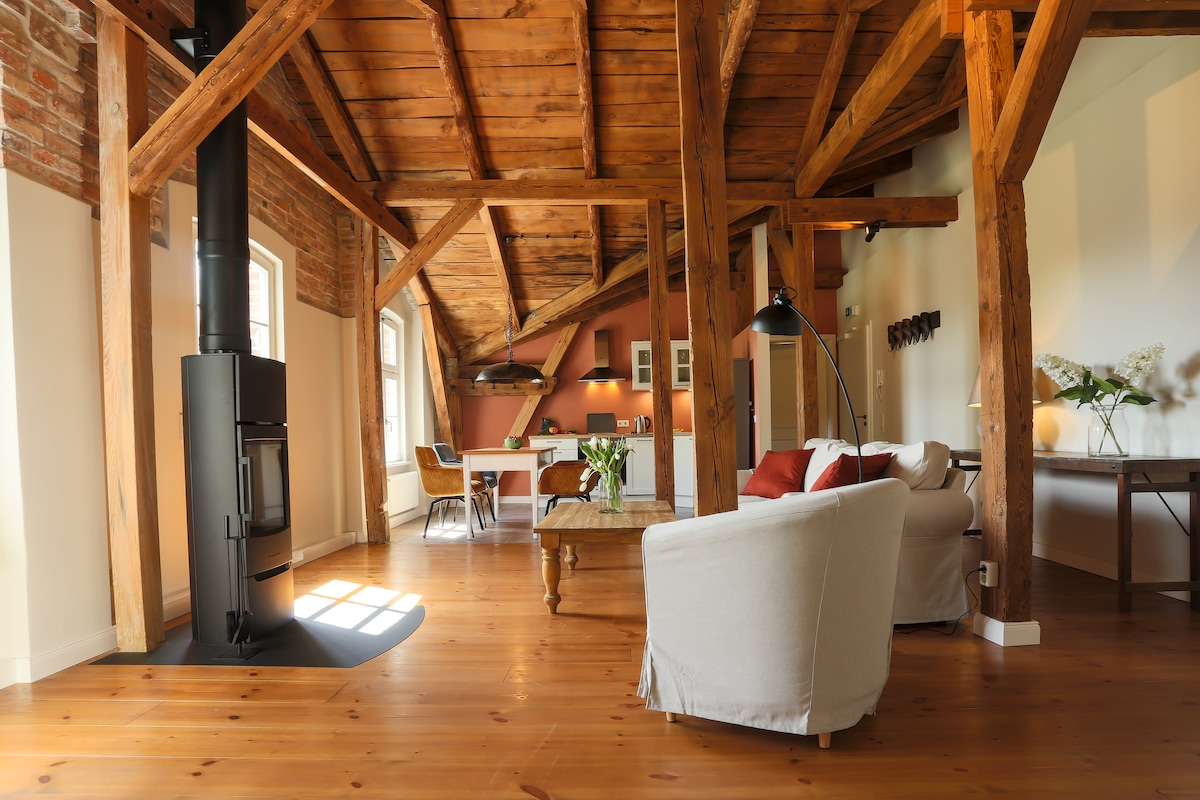 Genieße die Ruhe und Geborgenheit dieser alten Gemäuer. Umgeben von uraltem Baumbestand in der mecklenburgischen Seenplatte. Deine Ferienwohnung liegt im 1. Stock und wurde behutsam saniert. Wir haben die alten Lehmfachwerke wieder aufgemauert, die uralten Dielen freigelegt und an die Wände kam nur feinste Lehmfarbe. Abgerundet wird das HideAway durch einen kleinen gußeisernen Kamin für die Abende und eine private Sauna am Feldrand ... Wir lieben Kinder 🧡🌟 4 Katzen und 1 Hund leben am Hof ;-)