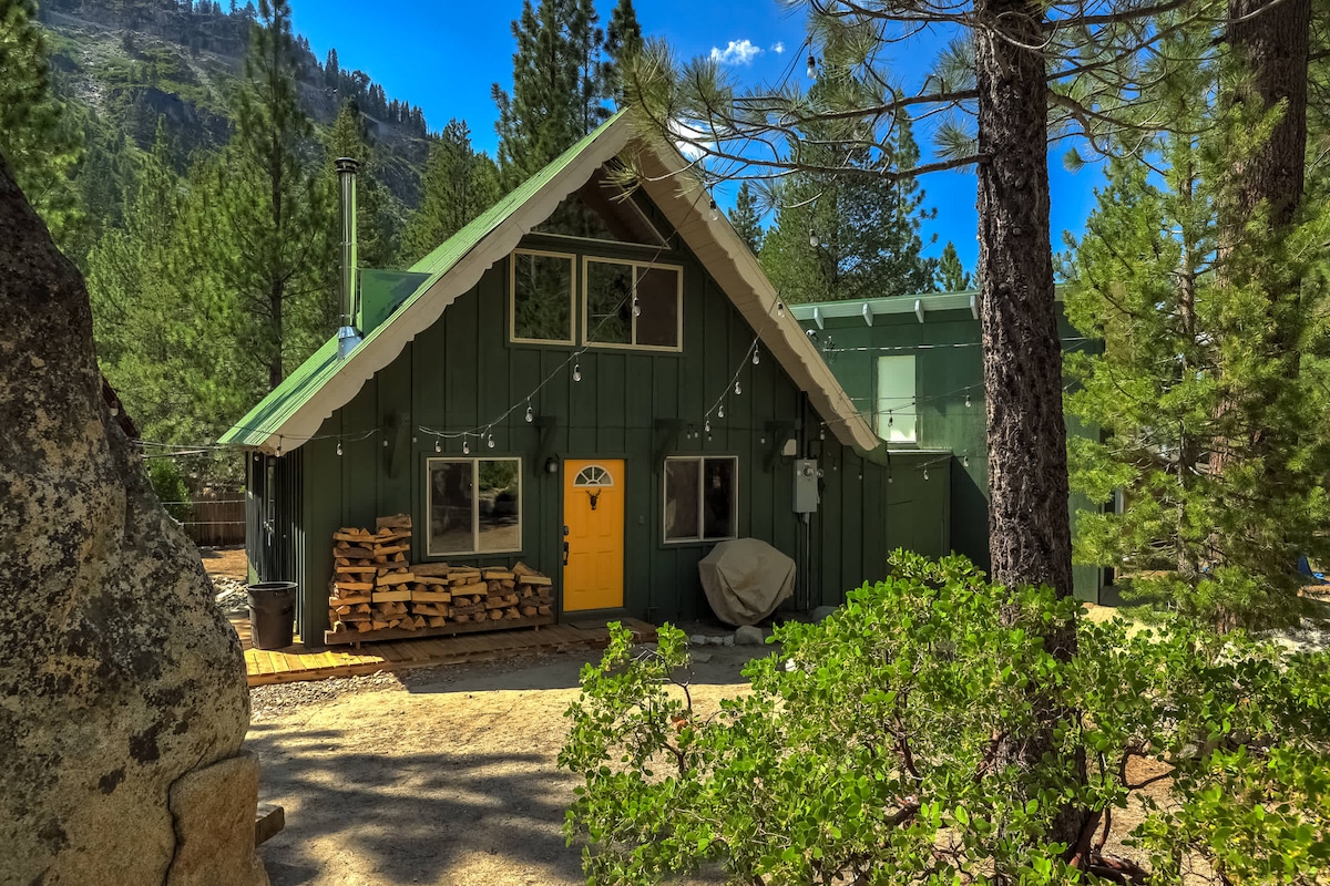 Idylická klidná chata, ukrytá na konci Vánočního údolí Nedávno zrekonstruovaná. 2 ložnice (hlavní a podkrovní) 2 koupelny 8 minut do Meyers. 15 minut do South Lake Tahoe Na akru půdy, sousedící s národním lesem Lyžování v Kirkwoodu (35 minut) nebo Heavenly (25 minut) a v blízkosti vynikajících sezónních stezek pro horská kola. Sezónní potok před domem, řeka Truckee za domem Pračka/sušička Velká plně vybavená kuchyně Kamna na dřevo a ústřední topení Ideální pro rodinu nebo 2 páry. (Max. 4 dospělí, do 5 let ok)