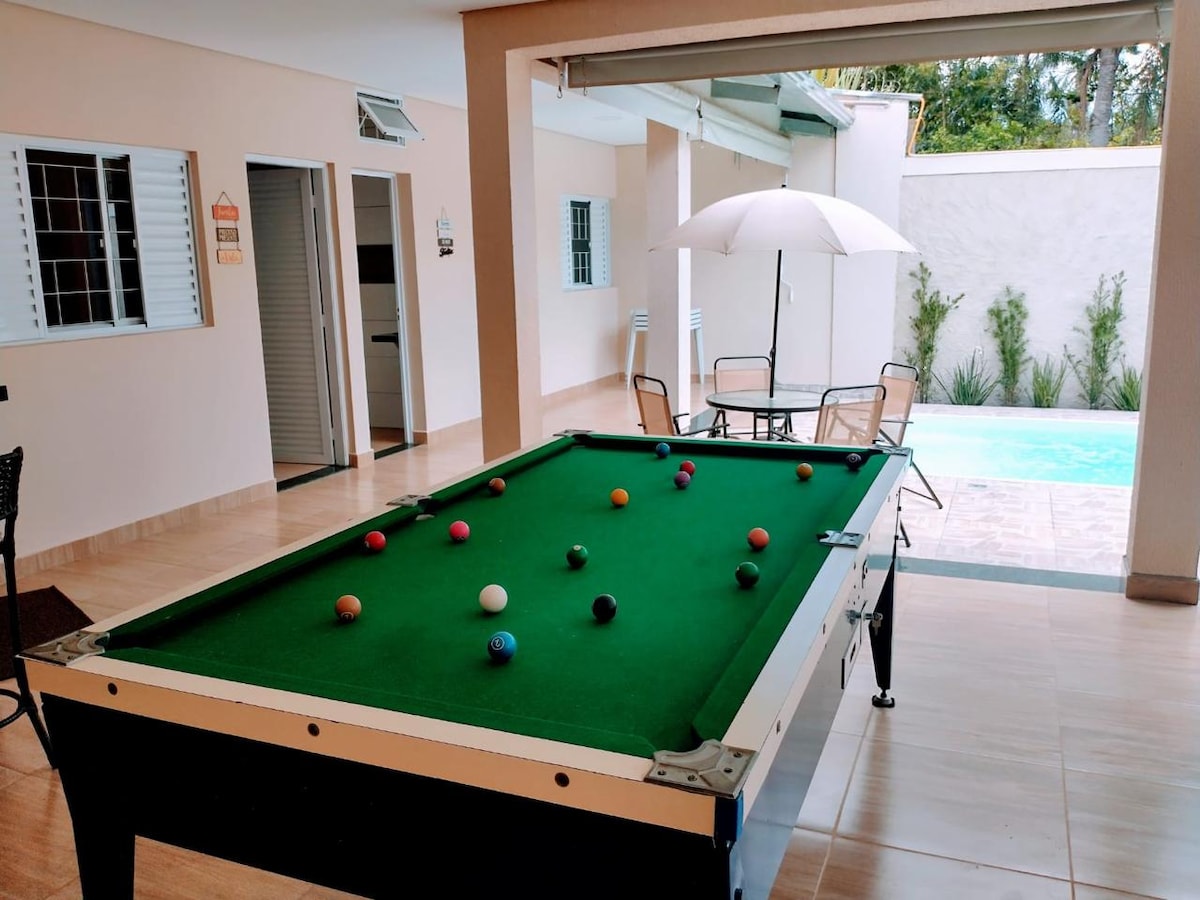 Rancho Villa Bella – Pohodlí a volný čas poblíž Uberlândie! Jen 15 km od Uberlândia, v uzavřené komunitě, Rancho Villa Bella je ideální destinací pro nezapomenutelné chvíle. S 5 ložnicemi, 9 lůžky (5 dvoulůžek a 5 jednolůžek) a 1 přistýlkou pro pohodlné ubytování rodiny nebo skupiny. The leisure area has a heated pool and pool table, which ensure fun and relax. Užij si klid a rezervuj si pobyt nyní!
