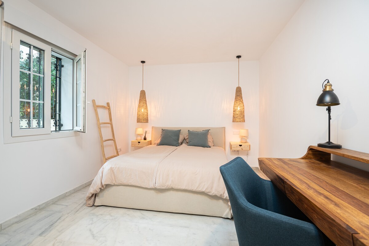 Probuď se na modré obloze a vychutnej si úchvatný výhled na moře ze své soukromé střechy🌊. Užij si zlaté západy slunce, sklenku vína nebo se opaluj v soukromí. Tento světlý byt v Pueblo Paraiso je jen 12 minut od pláží Marbella, golfu a Starého města. Rychlá wifi, pohodlné postele, vybavená kuchyně, nekonečný bazén a střecha pro pozorování hvězd nebo večeře při západu slunce. Ideální pro páry, rodiny nebo práci na dálku. Vhodné pro děti s přístupem na hřiště v okolí