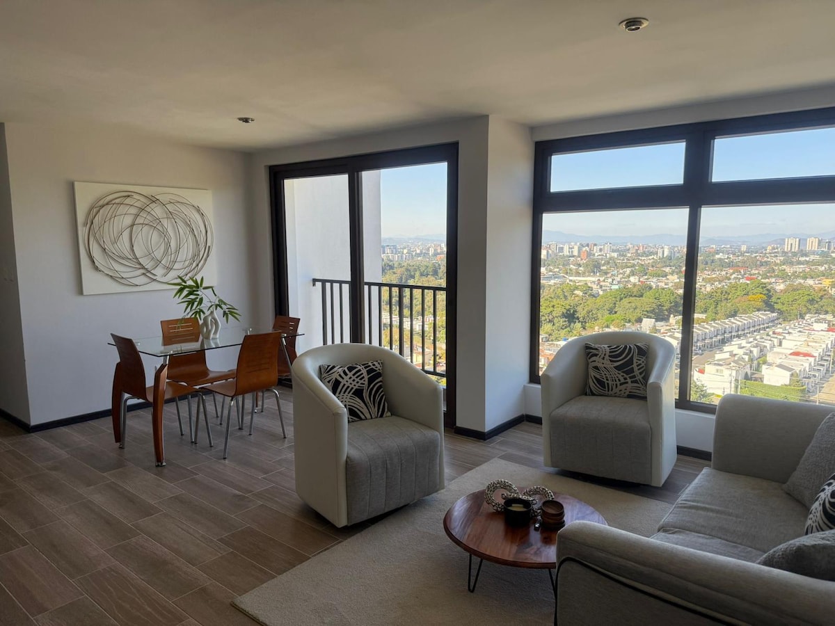 It's a very comfortable, spacious and nice place, right in the heart of Guatemala City. It has a great view because it's located in the 11th floor. You can find different restaurants, coffee shops, bakeries, shops and touristic places nearby. It has a queen bed, sofa bed, another huge sofa, bathroom with hot water, washer and dryer machine, dining room, a desk where you can work on your computer, Wi-Fi, NETFLIX, HBO and cable TV. There is an EcoFilter for water and a fan. IT INCLUDES PARKING.