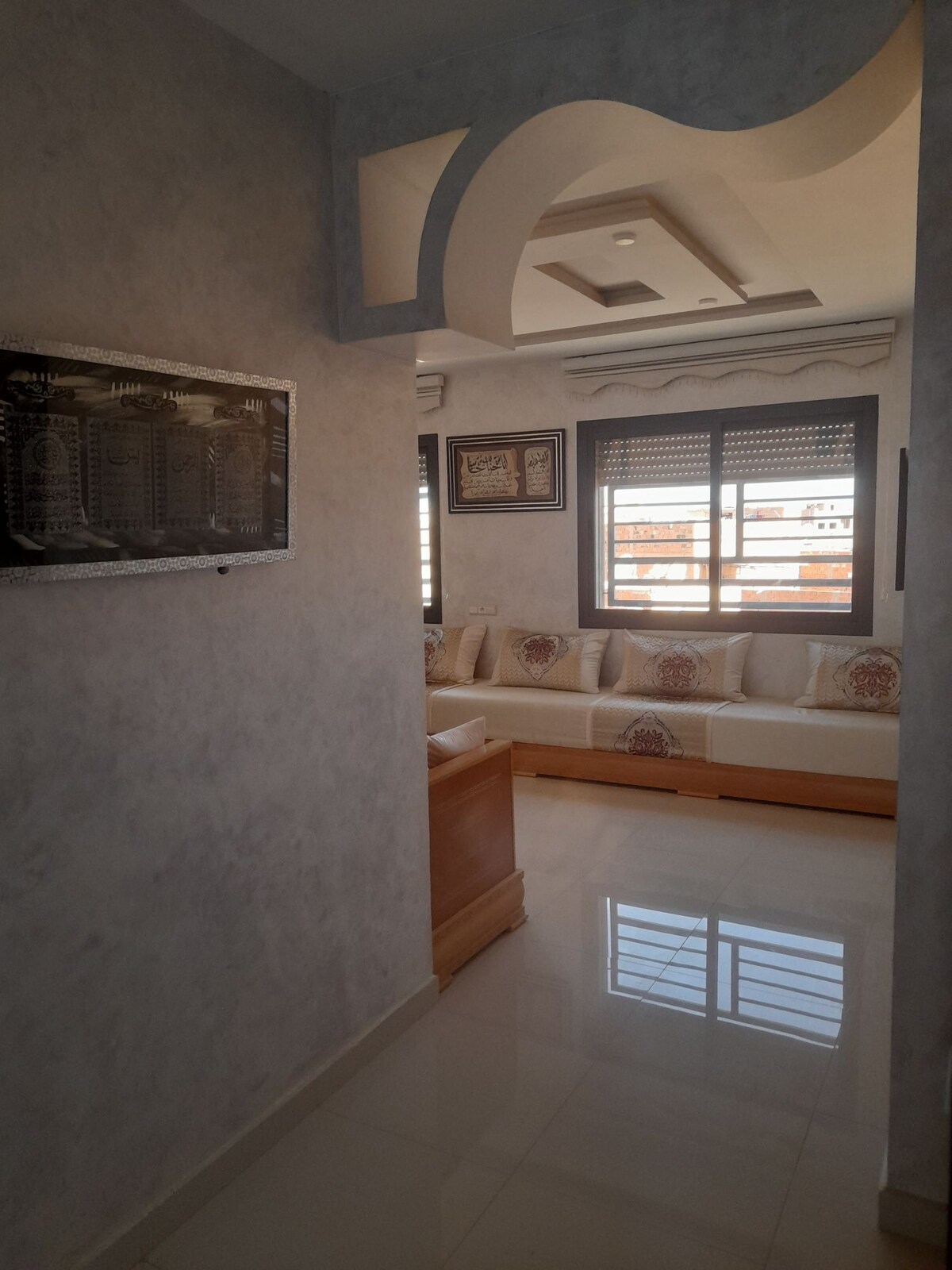 Bienvenue dans votre cocon à Oujda 🌞 Situé au 3ᵉ étage ,cet appartement moderne et lumineux est idéal pour un séjour calme et reposant. Il offre tout le confort nécessaire : climatisation, Wi-Fi rapide, cuisine équipée, machine à laver et chauffe-eau. Profitez d’un environnement paisible, d’un bon air et d’un parking gratuit. Conformément aux règles locales, le logement accueille uniquement les couples mariés et les familles. Un acte de mariage valide est requis.