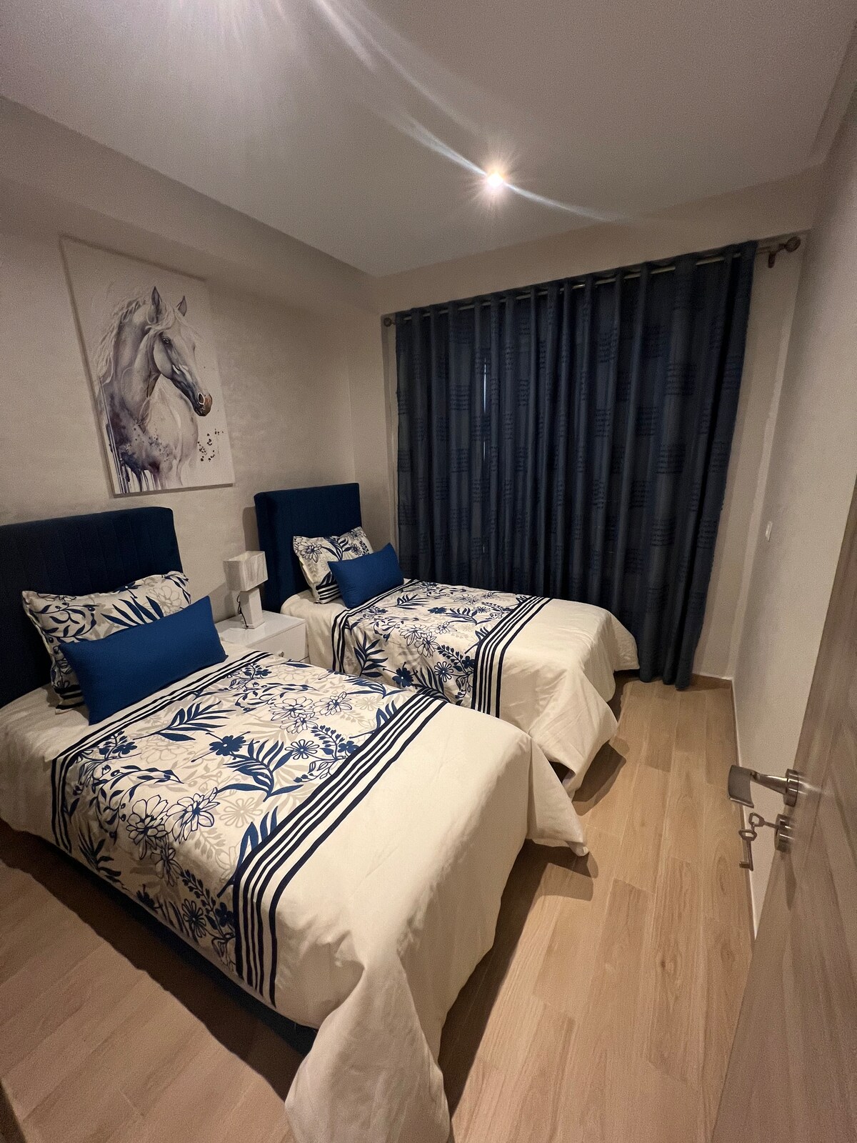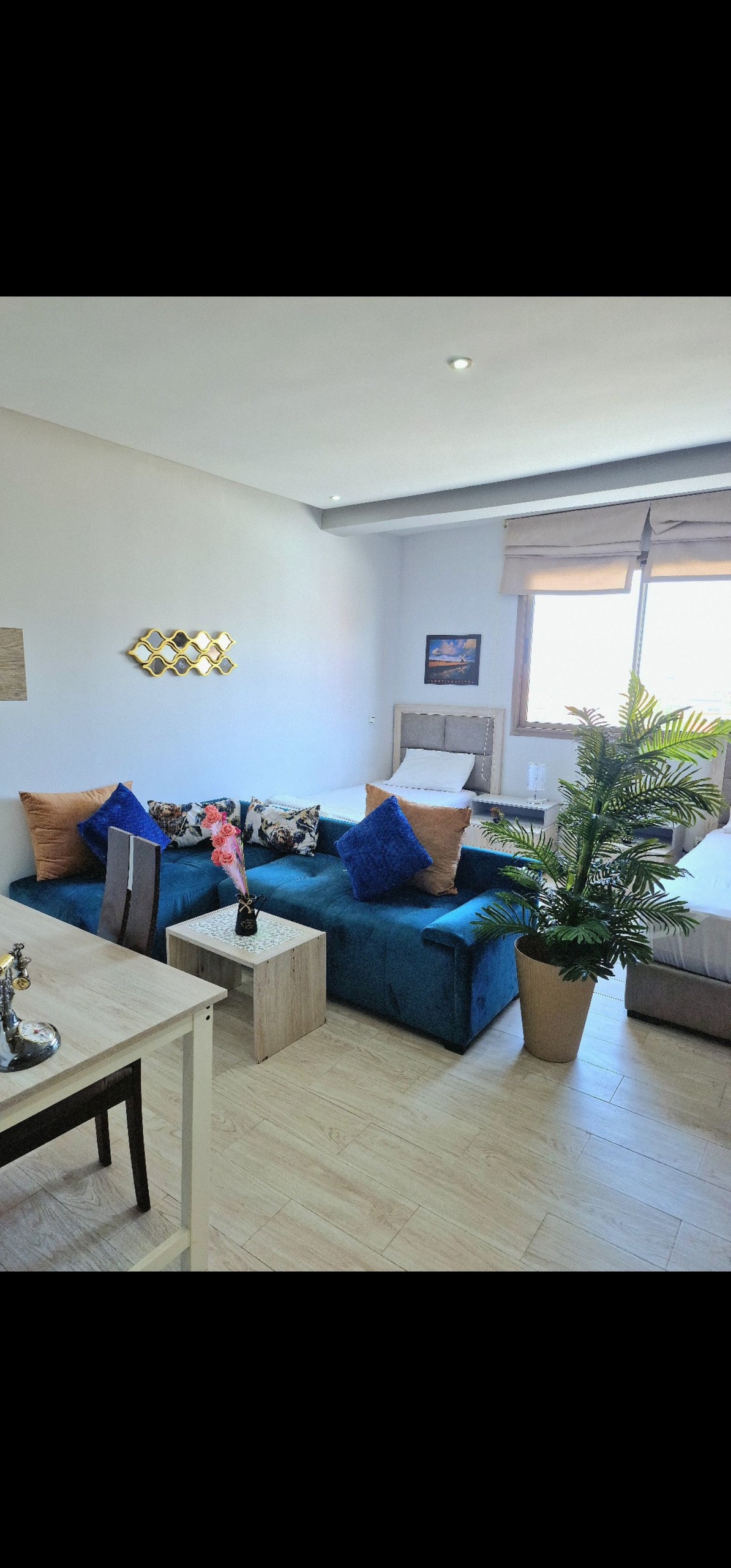 Tento byt se nachází v srdci Oujdy. Jen 5 minut chůze od všech zajímavých míst: slavné restaurace a nákupní centrum. Tento zcela soukromý a zbrusu nový byt se 2 ložnicemi, 2 koupelnami, jednou ložnicí se dvěma lůžky, velkou jídelnou a otevřenou kuchyní. Veškeré vybavení, které potřebuješ, zatímco jsi na nejlepším místě v Oujdě. Bez stresu a bez hluku. Terasa, Smart TV, Netflix.
