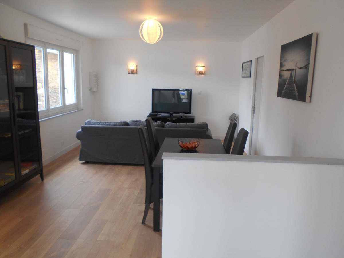 Dopřej si elegantní přestávku v apartmánu o rozloze 75 m², který se nachází v 1. patře bývalého kina ve stylu Art Deco z 30. let 20. století. Dvě ložnice s manželskými postelemi, velký světlý obývací pokoj, rafinovaná koupelna, toalety, vysokorychlostní Wi-Fi, prémiová kuchyně, připojená televize. 30 minut od Rennes, 1 hodinu od Lorientu, v srdci exkluzivního prostředí kombinujícího historické kouzlo a luxusní pohodlí.