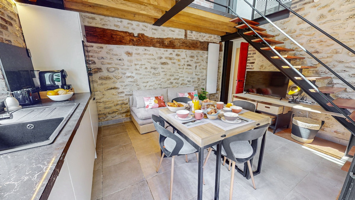 Užijte si elegantní a centrální ubytování v krásném městě Coulommiers! Tento malý, kompletně zrekonstruovaný a nově zařízený byt je vybaven manželskou postelí, kuchyní a funkční koupelnou. Nachází se ve druhém patře malého klidného domu bez výtahu. Zastávka autobusu (linka 17), který vás za 35 minut doveze do Disneylandu, je vzdálena 2 minuty chůze a vlakové nádraží, odkud odjíždí vlaky do Paříže, je vzdáleno méně než 15 minut. Nakupovat můžete v Intermarché nebo Franprix, které jsou vzdáleny 5 minut.