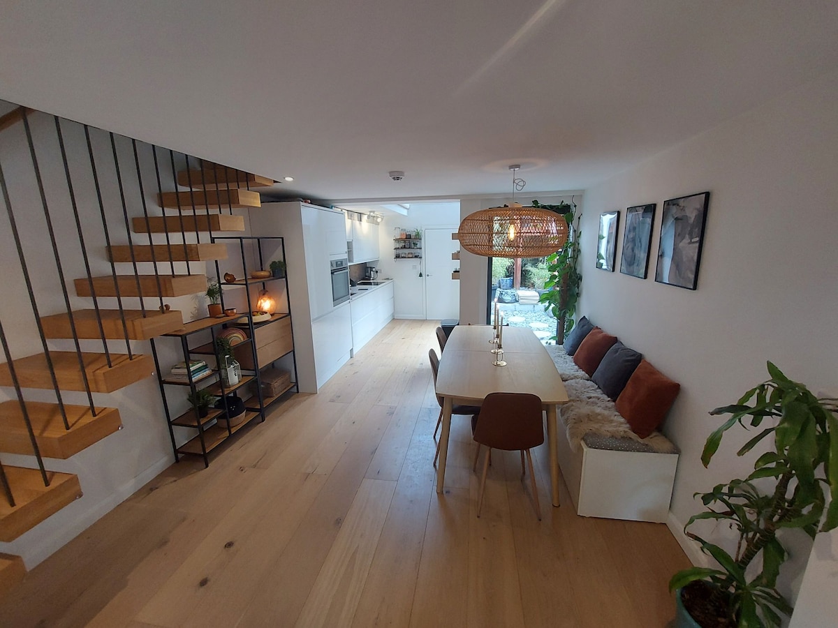 Uvolni se a užij si svůj vlastní světlý a vzdušný prostor v klidné obytné čtvrti, v blízkosti Downs a pouhých 20 minut chůze od Guildford High Street. Francouzské dveře z obývacího pokoje se otevírají na soukromou terasu s venkovním jídelním koutem. K dispozici je plně vybavená kuchyň s jídelním stolem, sprcha a ložnice. A perfect base to explore the Surrey Hills or RHS Wisley and only 40min drive to Heathrow or Gatwick. Rychlá wifi a parkování na příjezdové cestě. Poplatek za elektromobil je k dispozici na požádání a za poplatek.