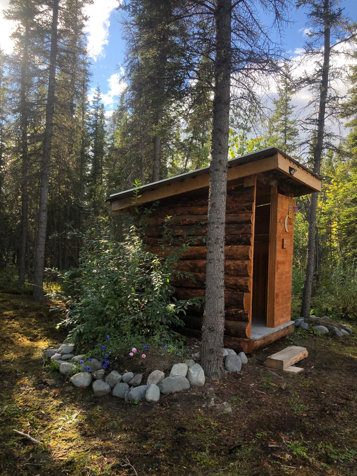 Rustikální aljašská suchá chata. Zastrčený ve stromech, ale ne příliš daleko od silnice. Tyto sruby jsou skvělým základním táborem pro tvá aljašská dobrodružství. Několik rybářských oblastí s lososem v okolí. V interiéru není k dispozici vodovodní potrubí. Hosté se musí cítit pohodlně při používání kůlny.