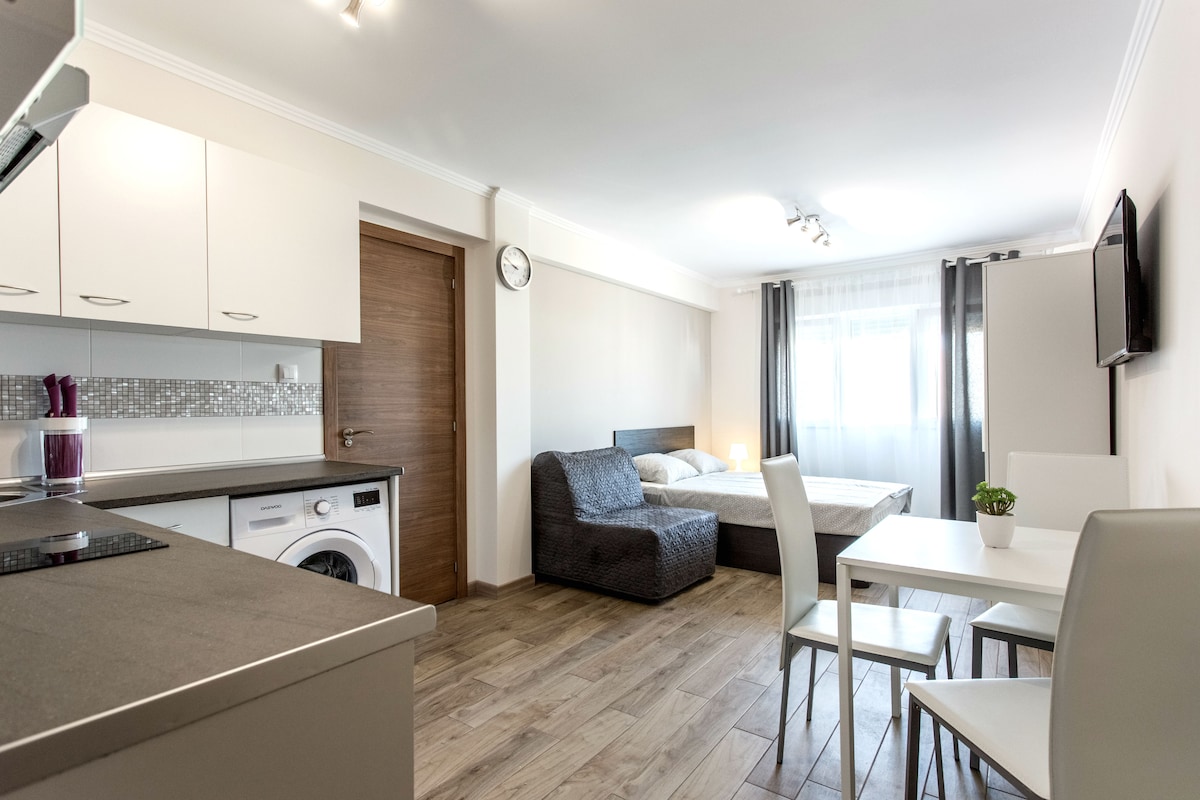 Brand-new, spacious, and modern studio just a 3-minute walk from the City of Arts and Sciences. Features a 150 cm bed, air conditioning, fast Wi-Fi, and a 75" Smart TV. Fully equipped kitchen with brand-new appliances. Direct street-level access and a small entrance patio. Contemporary, bright, and functional decor. Quiet area with excellent connections to the city center and the beach.