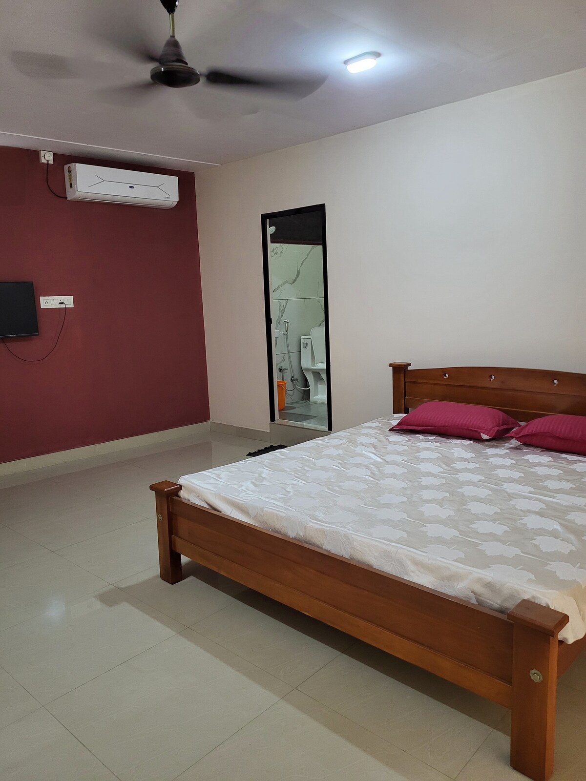 Prémiový apartmán 1BHK s prostorným, pohodlným a elegantním interiérem, plně zařízený apartmán s 1 ložnicí a klimatizací v uzavřené obytné budově s 24x7 zabezpečením s kamerovým systémem a soukromým parkováním. Oddechněte si v našem promyšleně navrženém prostoru s prémiovým ložním prádlem, klimatizací a moderním vybavením. Kromě manželské postele nabízíme také prémiový jídelní kout spolu s kuchyní. Balkon je prostorný a klidný se sedadly. Chrám Guruvayur je jen 500 metrů pěšky od našeho bytu.