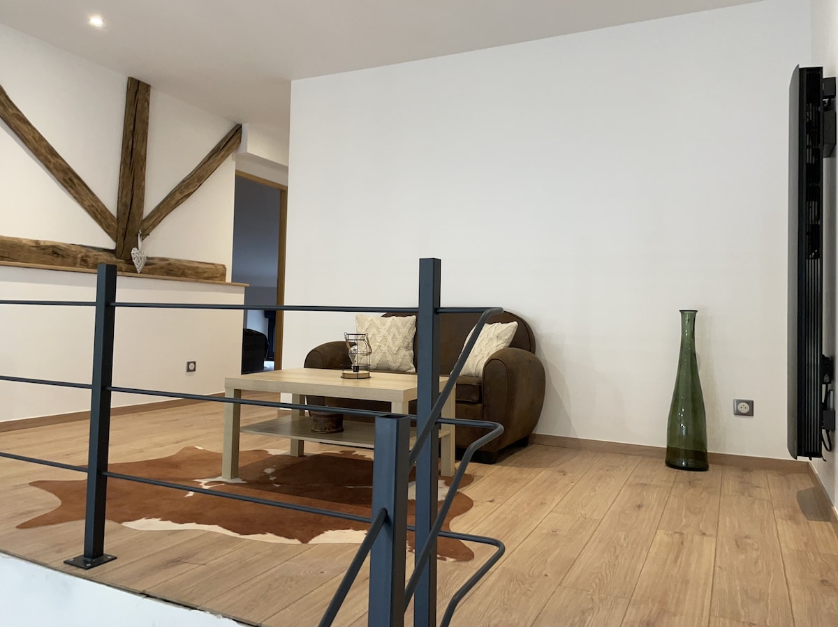 Appartement dans maison de caractère avec vue magnifique sur les vignes et la campagne environnante implantée dans le charmant village viticole de Coiffy le Haut appartement meublé et lumineux entièrement rénové au R+1 A faire Dégustation des vignobles locaux Visite de Langres et ces remparts , Bourbonne les Bains et ces thermes A 30 min des 4 lacs ( la liez, la mouche, charmes, Villegusien)