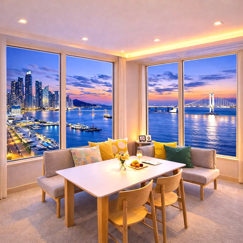 Ubytování pro skupiny v Haeundae 230 m² # 3 ložnice # OceanSuite # Rodinný pokoj # Možnost vaření # Mořská atmosféra # Relaxační pobyt