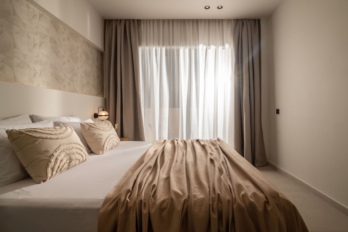 Vily Nousa, zasazené do klidných kopců Volimes na Zakynthosu, nabízejí klidný únik s panoramatickým výhledem na Jónské moře. Tyto kamenné vily jsou navrženy s decentním luxusem a středomořskou elegancí a jsou ideální pro páry, malé rodiny nebo kohokoliv, kdo touží po prostoru, přírodě a klidu. Každá vila je promyšleně navržena tak, aby kombinovala pohodlí, soukromí a styl. Uvnitř najdete vysoké stropy, přírodní textury a krásné světlo v otevřených obytných a jídelních prostorách.