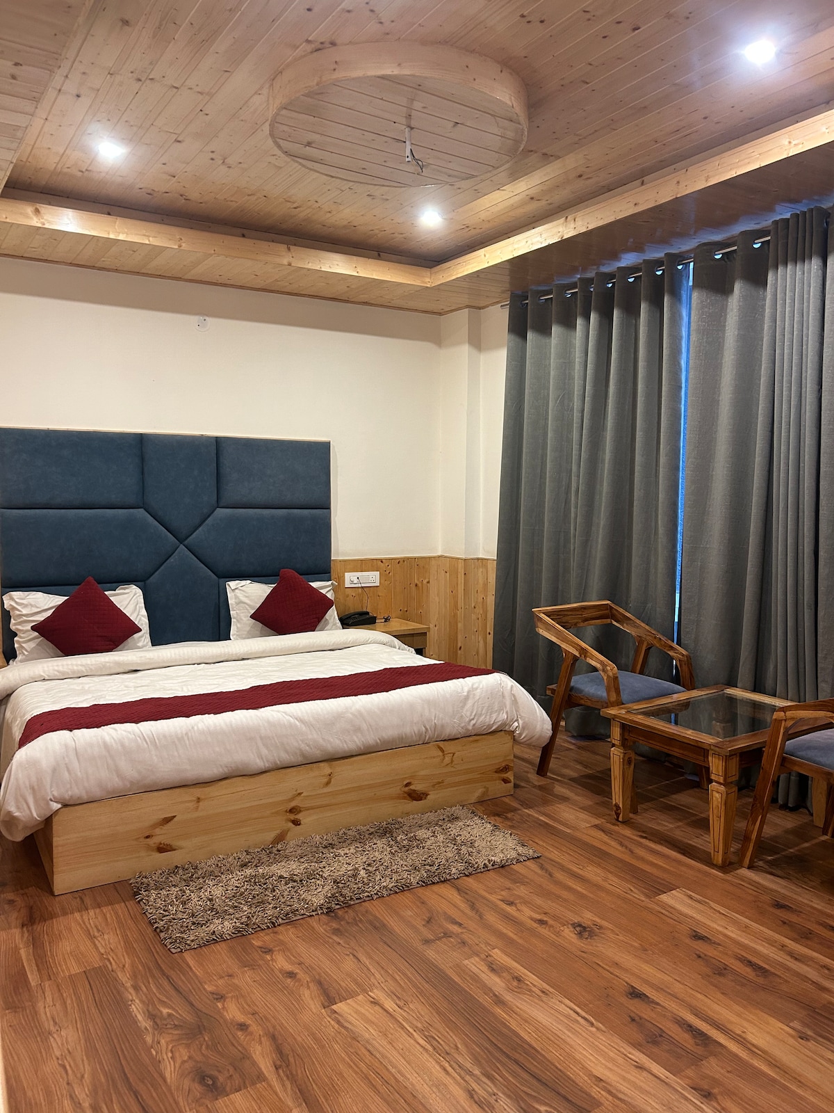 Super cozy Duplex Suite WITH WINDOWS for mountain view. One bedroom on lower level with one washroom and a wooden stairs to upper level bedroom. it has a sofa set on upper level where 4-5 guest can sit and enjoy food. ROOM INCLUSIONS : -Comp Mineral water on arrival -Free WI-FI , parking Free Breakfast (Morning 8.30 till 10.30am)served at dining area only (No Room Service) -Heater at additional 300/- rs charge Room is on 3rd Floor Note *No provision of lift*