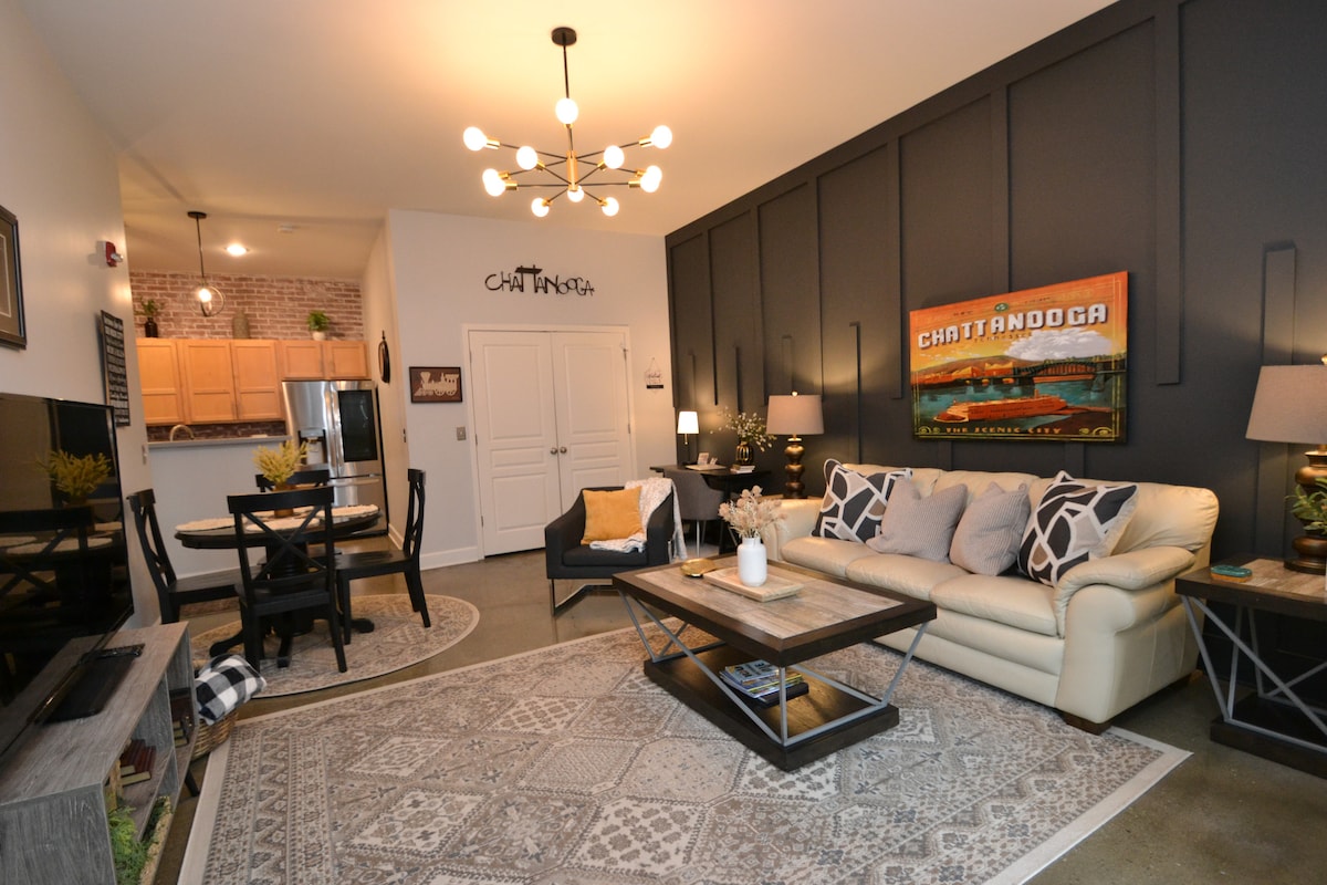 Odpočiň si od svých dobrodružství v Chattanooze v našem bytě v centru města s pohodlným nábytkem, domácími detaily a koutkem pro děti s knihami a hračkami. Objednejte si a sledujte Netflix na gauči nebo si uvařte rodinné jídlo v plně vybavené kuchyni (včetně dětského nádobí). Ideální pro rodinu, dva páry nebo malou skupinu přátel, kondominium má společnou posilovnu, bazén a ohniště. Je to ideální základna pro objevování všeho, co Chattanooga nabízí!