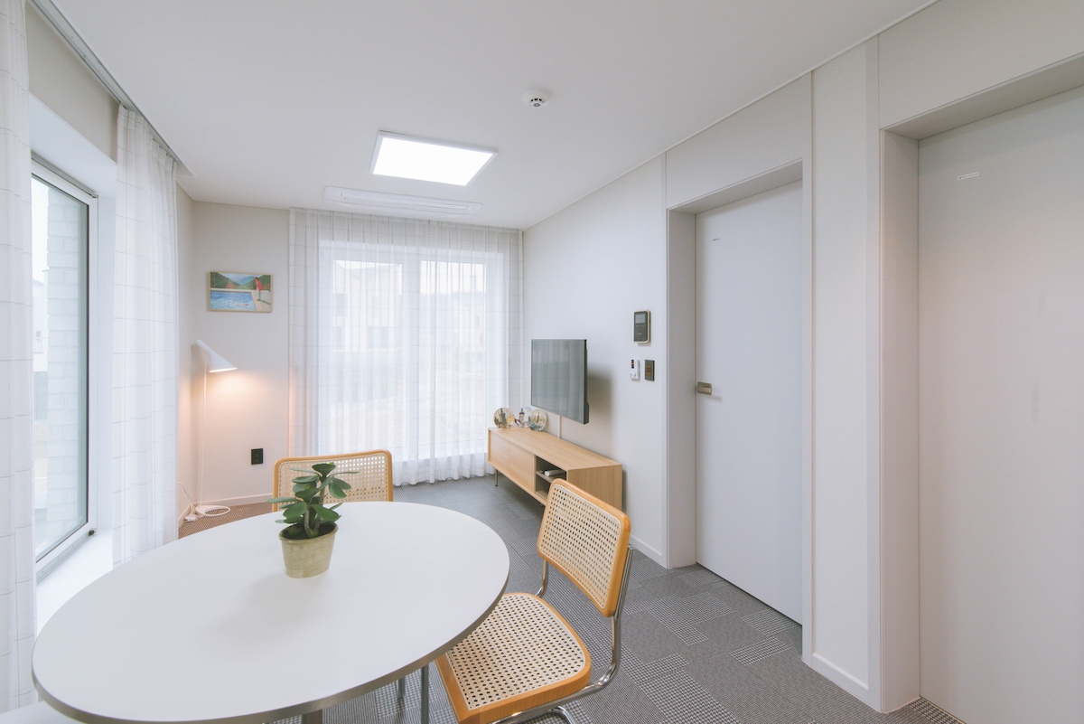 It is an accommodation with both accessibility and clean style, close to Unseo Station Airport Railroad from Incheon Airport. Kuchyňské náčiní je připraveno a poskytuje pohodlí pro dlouhodobé i krátkodobé pobyty. Toto je▶ bezkontaktní přímý příjezd. V den příjezdu ti▶ pošleme číslo pokoje a pokyny k příjezdu. Po příjezdu do ubytování můžeš vstoupit přímo do pokoje bez procesu příjezdu. Nabídka ubytování Příjezd 15:00 Odjezd 11: 00 Průvodce ubytováním a vybavením Informace o prostoru a zásobách [ložnice] Manželská postel/chytrá televize/OTT (osobní účet)/ Žaluzie/šifonové závěsy/kulatý stůl/židle/ložní prádlo na podlaze (1 osoba) - placené [kuchyně] Mraznička • Lednice/Indukce/Mikrovlnná trouba/Konvice na kávu/Hrnek/Pohovka/Pánev/Nádobí/Sada nádobí [koupelna] Šampon/kondicionér/sprchový gel/mytí rukou/podložka na nohy/sušička Jednorázové předměty (zubní pasta, zubní kartáčky atd.) jsou poskytovány za poplatek v souladu s vládními zásadami.