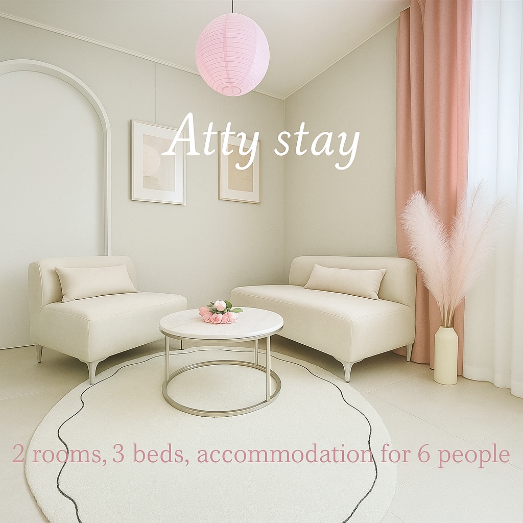 „NORMÁLNÍ VĚCI“ jsou proti normálnosti každodenního života. Chci poskytnout pohodlnou neznámost prostřednictvím tohoto místa plného obyčejných věcí, které lze snadno vidět v každodenním životě. Během dne vnímejte chladný vánek a teplé sluneční světlo přicházející velkým oknem. večer si odpočiňte při poslechu oblíbené hudby. Příjezd: 15:00 Odjezd: 11:00 Doporučujeme rezervaci pro 2 osoby. (Nastavení ložnice s manželskou postelí, 2 lůžka nejsou k dispozici) 3 osoby: Povlečení na rozkládací pohovce v malém pokoji